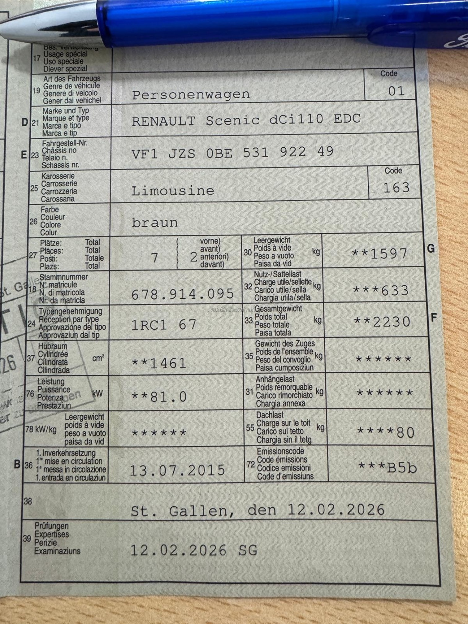 | Kommentar | Gepflegtes CH-Fahrzeug in einem gutem Zustand Frisch ab MFK. Motor Getriebe I.O Sonnenblende zu ersetzen Defekt. Gebrauchtes Fahrzeug kann Kratzer und Beulen aufweisen. Fahrzeugbereifung und Ausstattung gemäß Fotos. Keine mechanische Prüfung, Fahrzeugkauf auf eigenes Risiko ab Platz ohne Nachwährschaft. Die Gewährleistung für Sachmängel wird wegbedungen. Keine Barzahlung möglich Sie erhalten von uns nach zusage eine Rechnung muss inert 3 Tagen Bezahlt und abgeholt werden. |