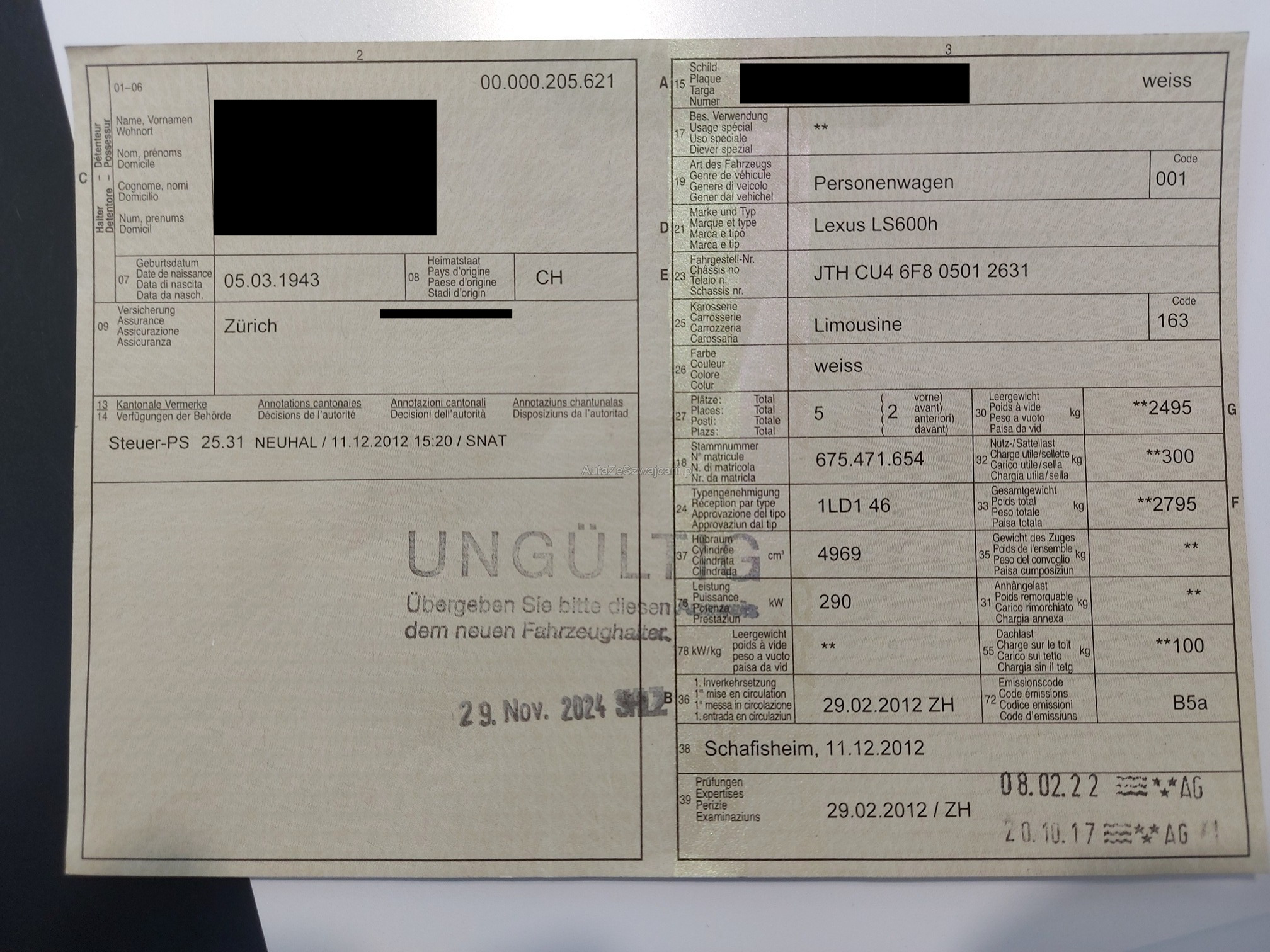 | Kommentar | - leichte Kratzer Das Risiko liegt somit vollumfänglich beim Käufer. Um Missverständnisse zu vermeiden kann das Fahrzeug auf Voranmeldung besichtigt & getestet werden. Wird davon bewusst kein Gebrauch gemacht, liegt die Verantwortung beim Käufer. Nach Zuschlag, keine Nachverhandlungen möglich. Ab Platz ohne Garantie, Wandelung und Minderung werden wegbedungen. Abholung vom Fahrzeug spätestens 5 Arbeitstage nach dem Zuschlag. Spätere Abholungen können abgemacht werden, werden jedoch mit Fr. 8.- / Tag in Rechnung gestellt. |