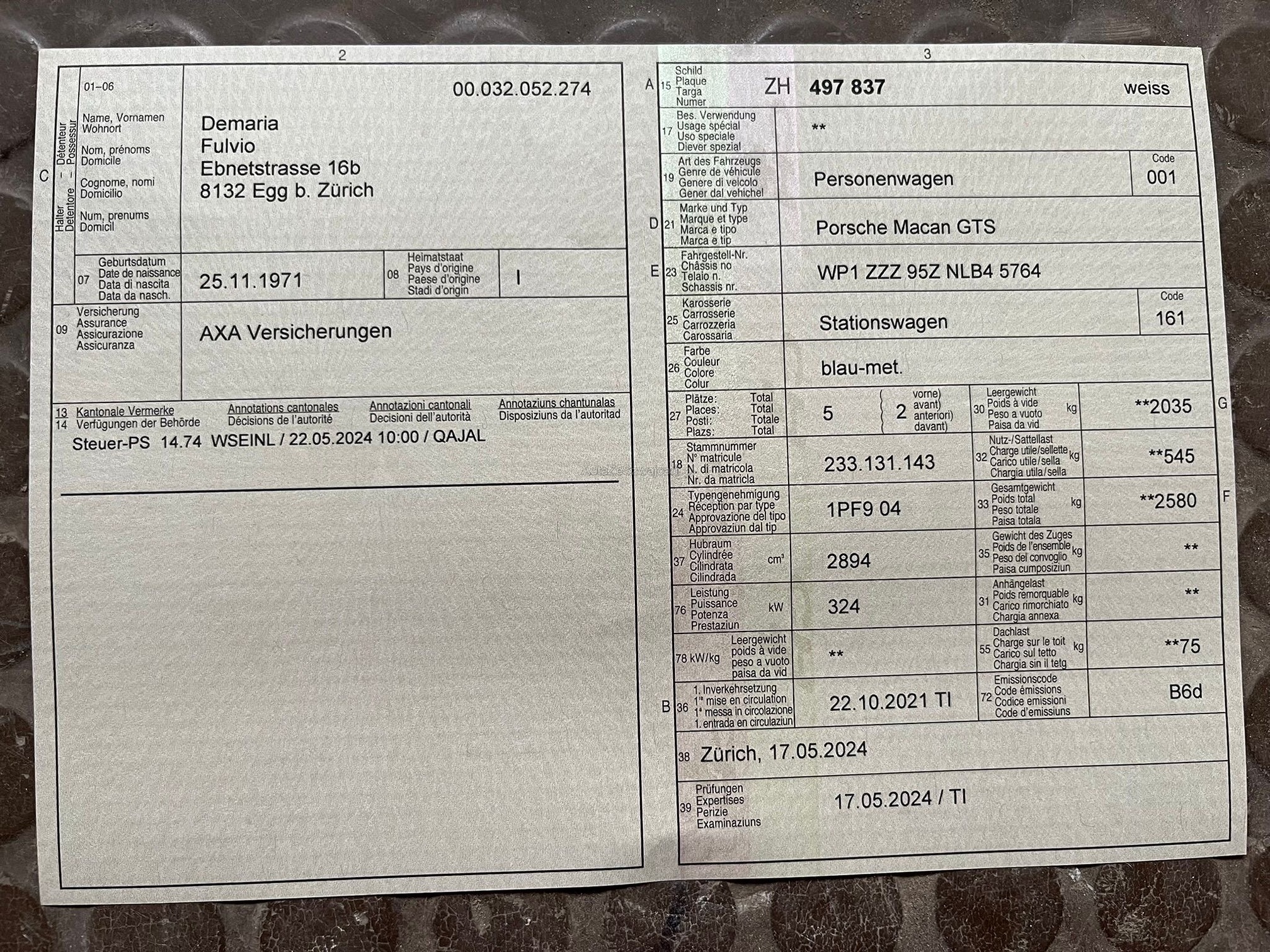 | VIN | WP1XXX |
