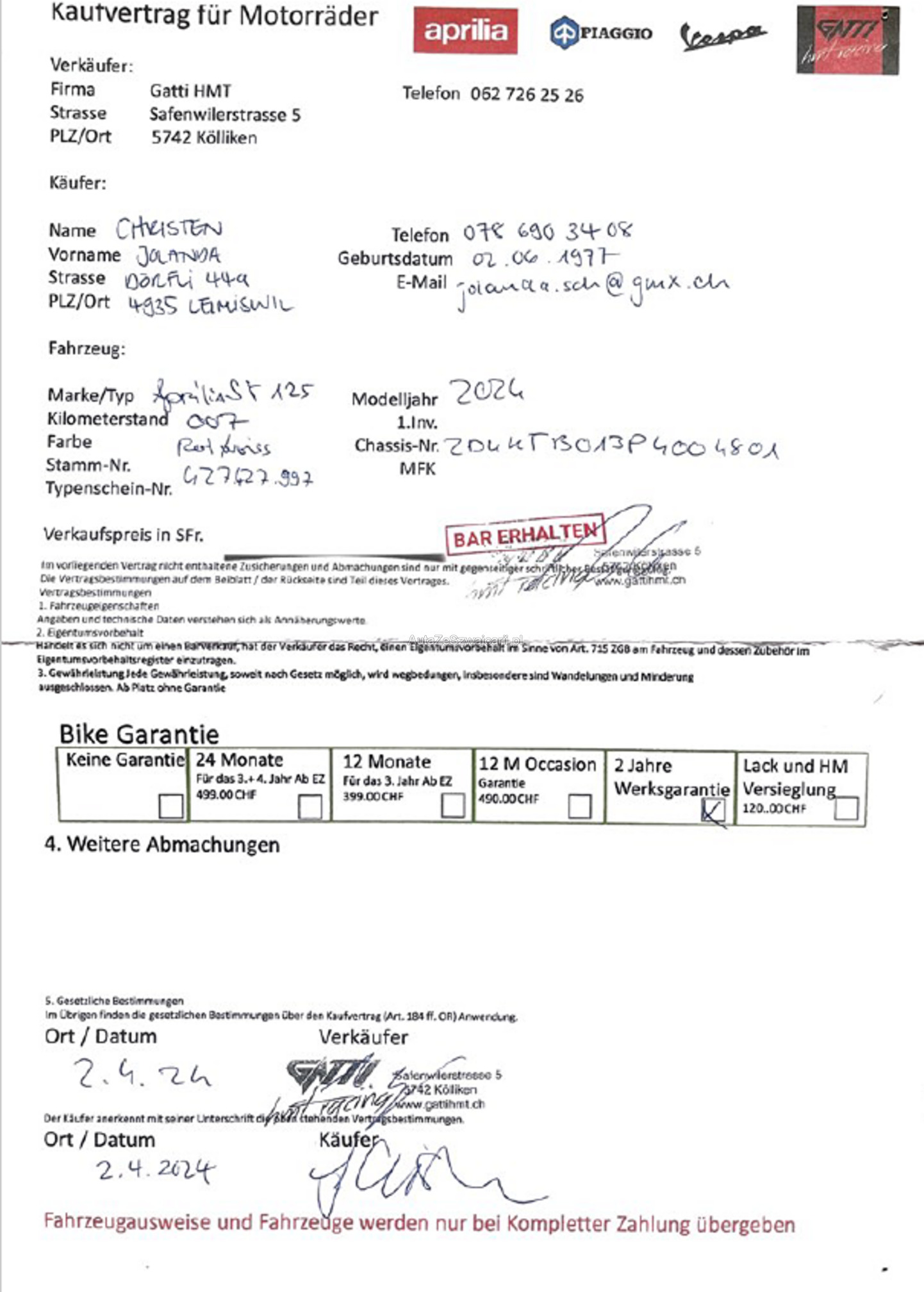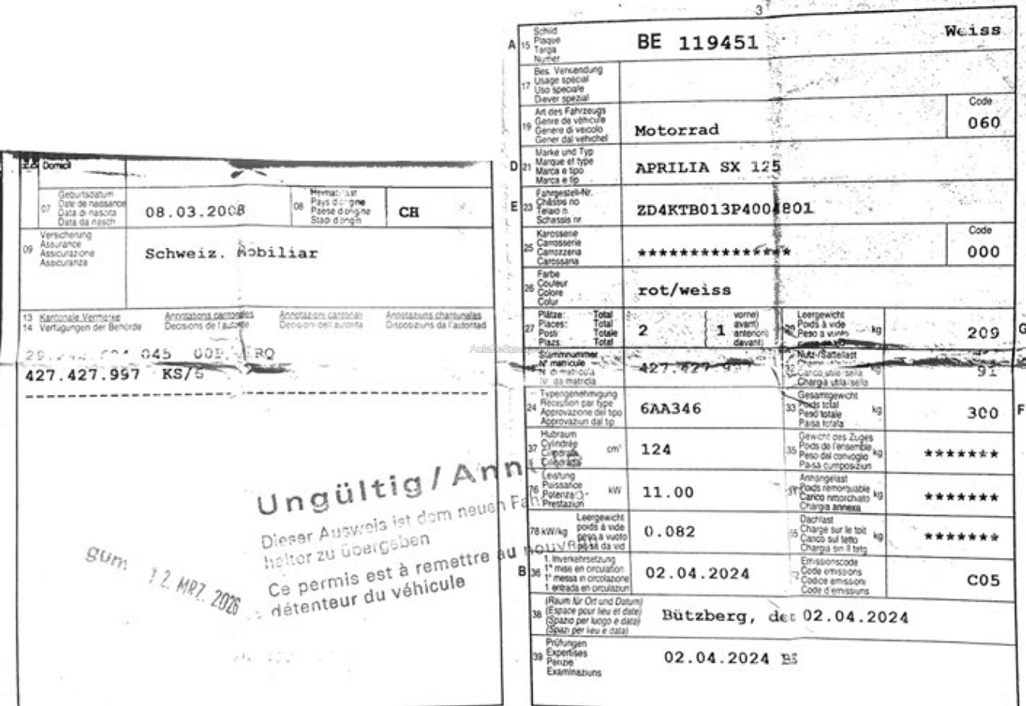 | Kommentar | Kategorie A1, Fahrbar ab 16 Jahren. Im Kundenauftrag zu verkaufen. Ab Platz ohne Garantie. |