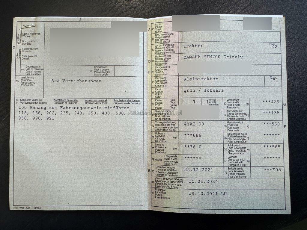 | Fahrzeugausweis | Vorhanden |
