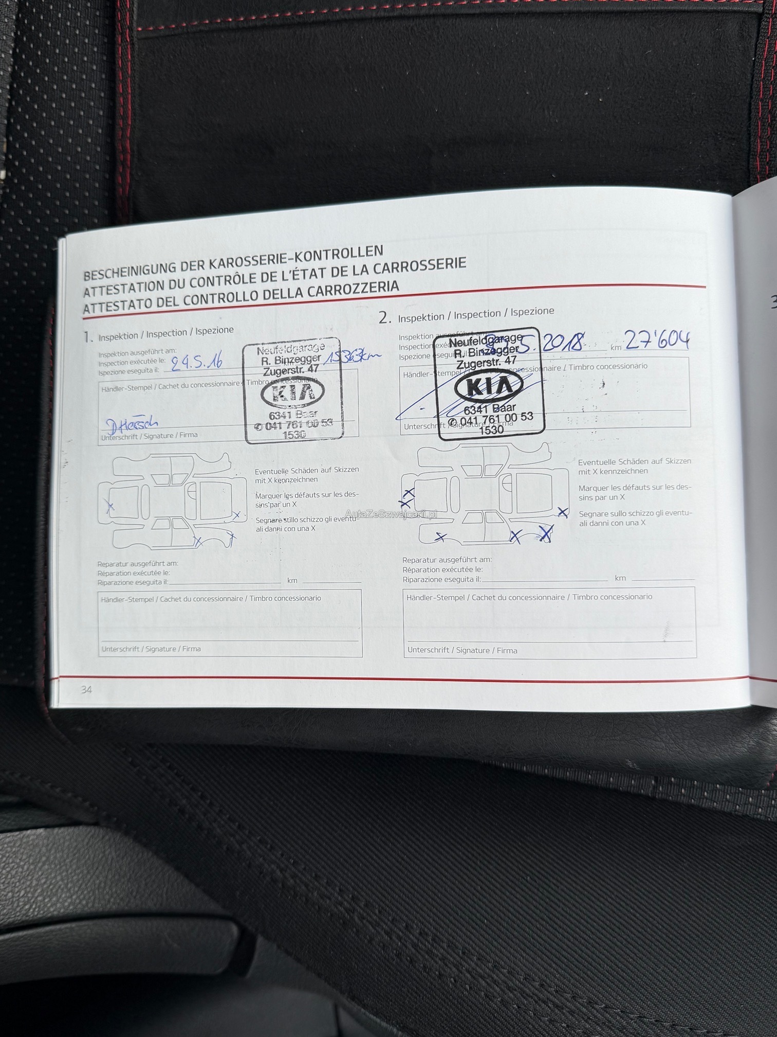 | Kommentar | Es wurde kein Werkstatt-Test durchgeführt. Karrosserie - Schäden (gemäss Fotos |