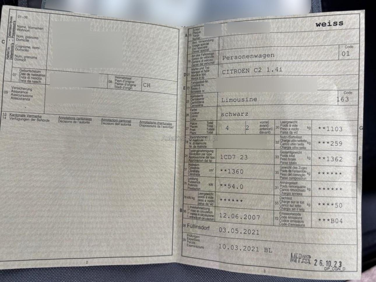 | Fahrzeugausweis | Vorhanden |
