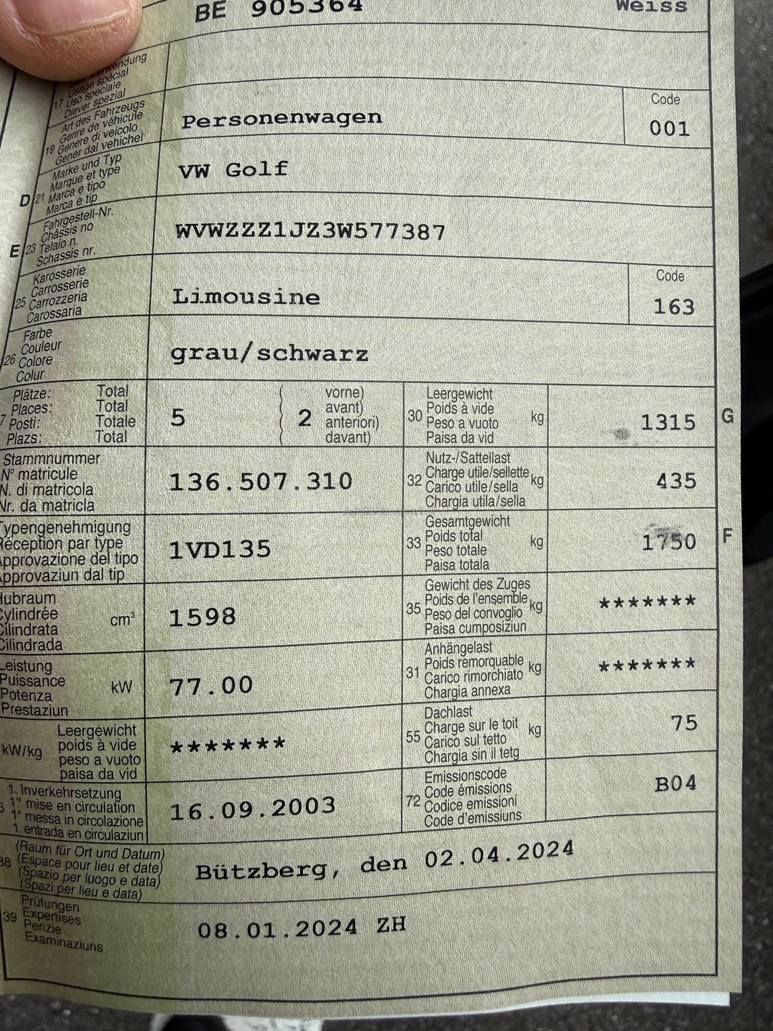 | Leistung in kW | 77 |