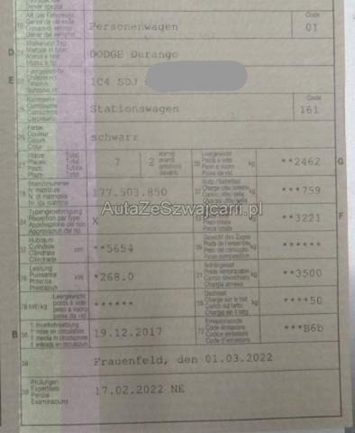 | Condition_and_Equipment | Zustand Fahrzeug ist NICHT fahrbar. Fahrzeug ist rollbar. Bereifung Fahrzeug wird mit Winterräder abgegeben. Schlüssel Nur ein Schlüssel vorhanden. --- Front Front eingedrückt. Front links eingedrückt. Front rechts eingedrückt. Frontblech/Maskenblech eingedrückt. Längsträger vorne rechts gestaucht. Längsträger vorne links gestaucht. Längsträger vorne rechts und links gestaucht. Motor Risiko Motor. Alle Kühler vorne sind eingedrückt. Achse Risiko Vorderachse. Weitere Beschädigungen Beschädigung Stossstangenabdeckung vorne gerissen, Kühlergrill und Gitter unten gebrochen, Scheinwerfer links und rechts gebrochen, Nebellampe vorne links und rechts gebrochen, Querträger eingedrückt, Schlossträger deformiert, Kühlerpaket verformt und beschädigt, Kühlerlüfter gebrochen, Verstrebungen vorne deformiert, Längsträger links und rechts gestaucht, Radarsensor vorne gebrochen, Diverse Abdeckungen und Luftführungen vorne gerissen und beschädigt, Motorhaube gestaucht Die Front wurde bis zum Motor eingedrückt, weitere Beschädigungen am Motor sind nicht ausgeschlossen! --- Serienaustattung Airbag Fahrer und Beifahrerseite Sitzheizung vorne Sitzbank hinten Seitenairbag Fahrer und Beifahrerseite ESP Elektronisches Stabilitätsprogramm Nebelscheinwerfer Innenspiegel automatisch abblendbar Alarmanlage Keyless-Go Tagesfahrlichtschaltung Servolenkung elektrisch Rückfahrkamera Drei Zonen-Klimaautomatik Sitzheizung 2. Reihe Reifendruck-Überwachungsanzeige Berganfahrhilfe Einparkhilfe vorne und hinten Windowairbags für alle 3 Sitzreihen Aussenspiegel beheizbar Rücksitze umklappbar 60/40 Blind Spot Monitoring Details siehe gültige Preisliste des Importeurs Keine Gewähr auf die Angaben der Serienausstattungen Pack Anhänger Pack Blacktop Pack Technology Pack Cargo Plus |