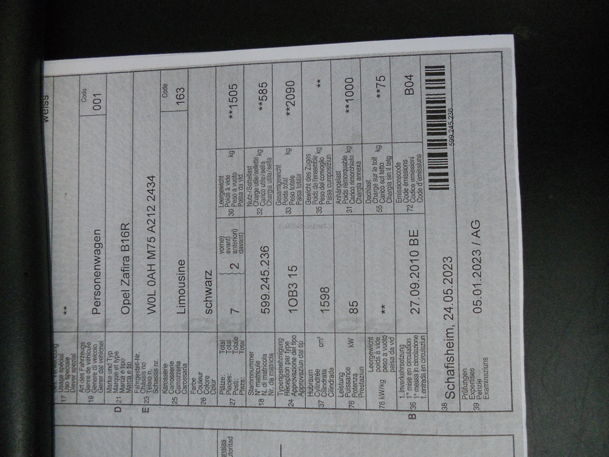 OPEL Zafira B16R