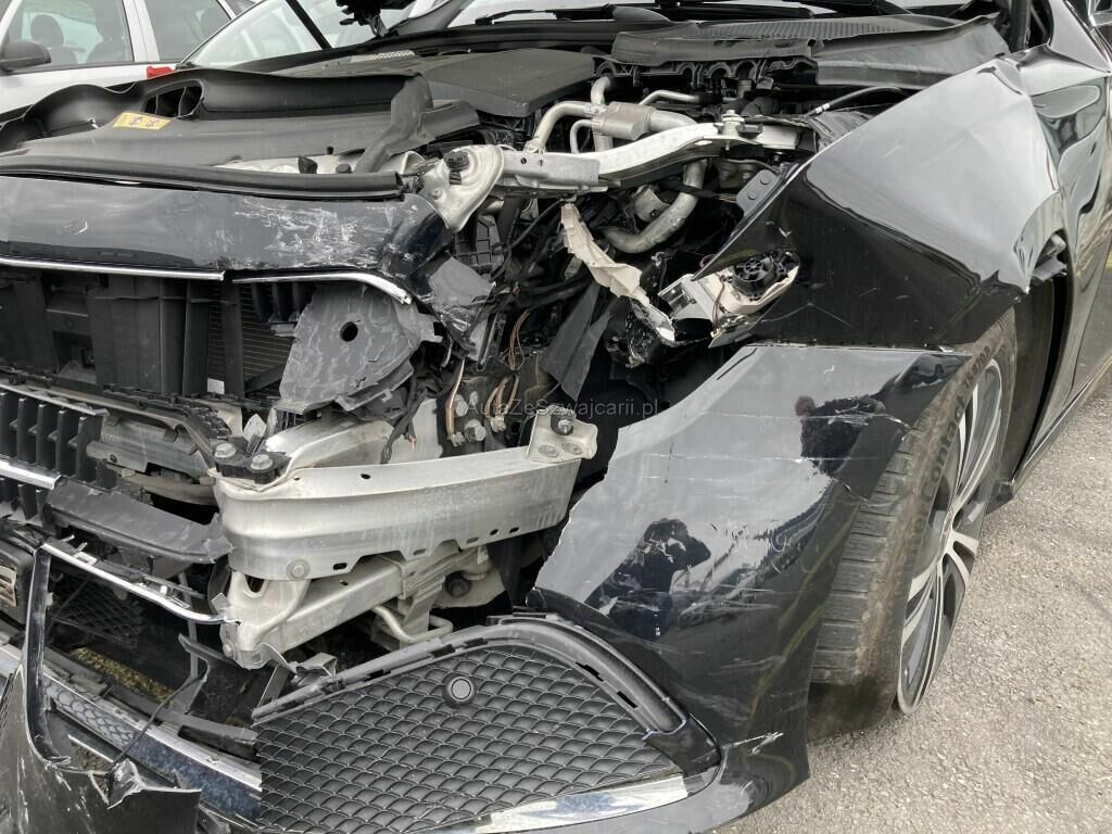Tout l'avant très fortement endommagé/plié/refoulé ( enveloppe de pare-chocs, renfort, façade frontale, l'ensemble des radiateurs, calandre, radar ACC , mécanique avant gauche, etc...) +pare- brise, airbag conducteur et genoux déployés, 4 ceintures prétentionnées