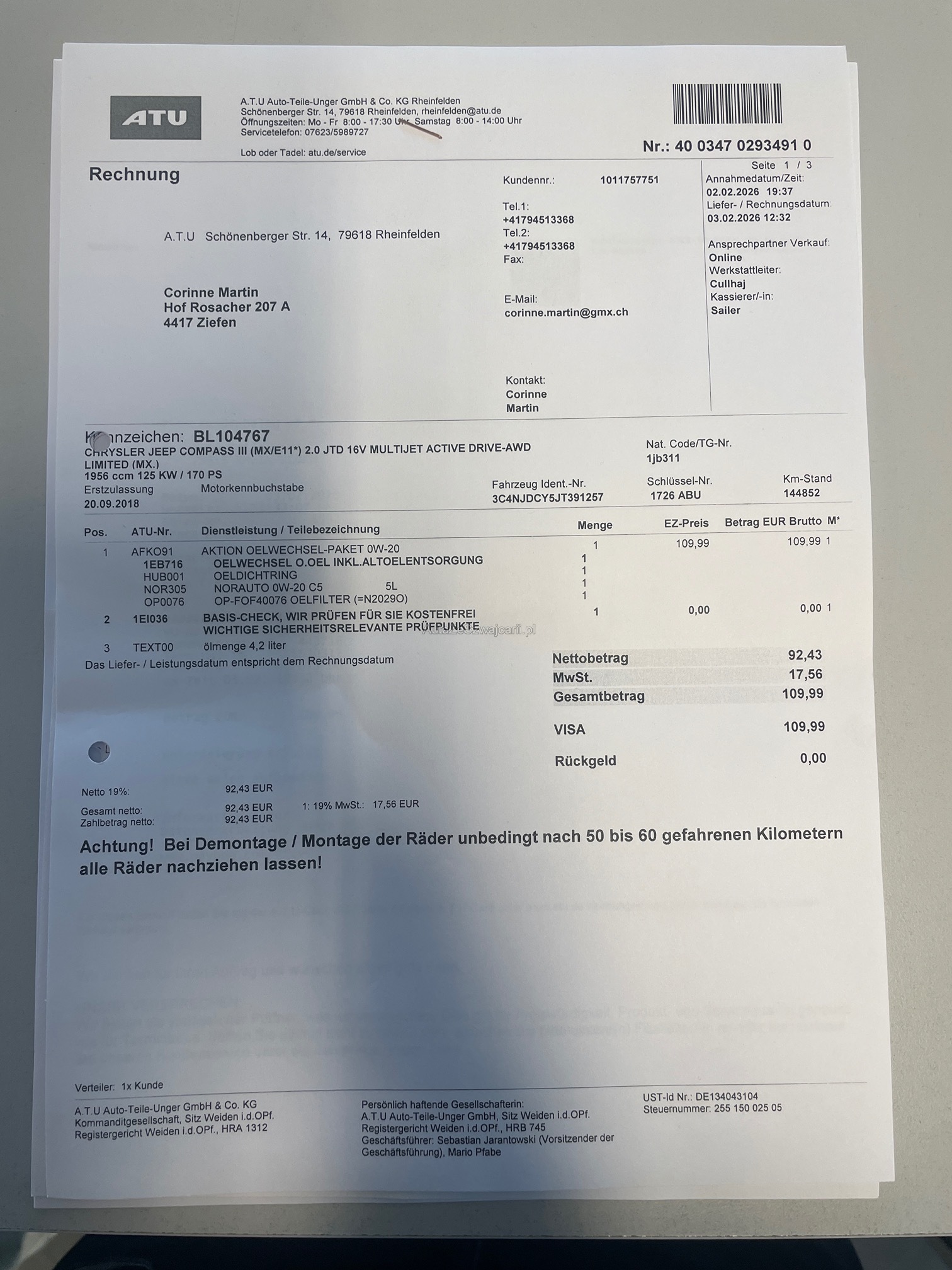 | Rost am Fahrzeug | No |