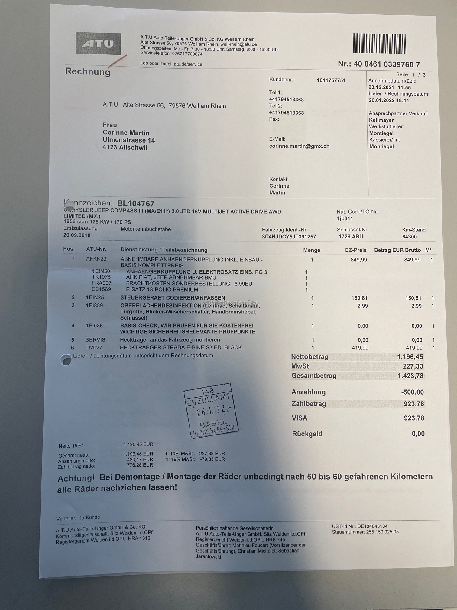 | Hintere Bremsen müssen ersetzt werden | Yes |