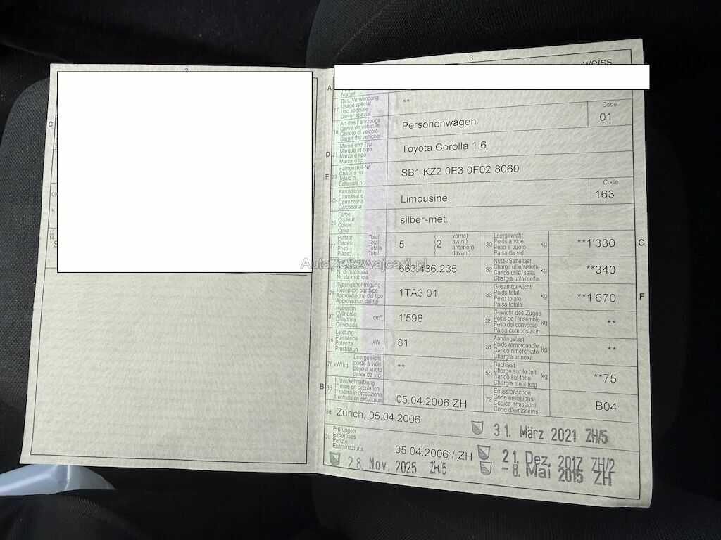 | Typ | COROLLA 1.6 5-DOOR A/T / NICHT FAHRBAR!!! |