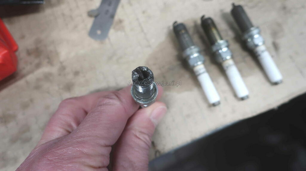 La distribution est décalée. Il n'y a plus ou peu de compression sur les cylindres 1, 2 et 4. La bougie du cylindre 2 a explosé et de la limaille est visible dans ce cylindre. Il y a des marques de soupapes sur les pistons 1 et 4.