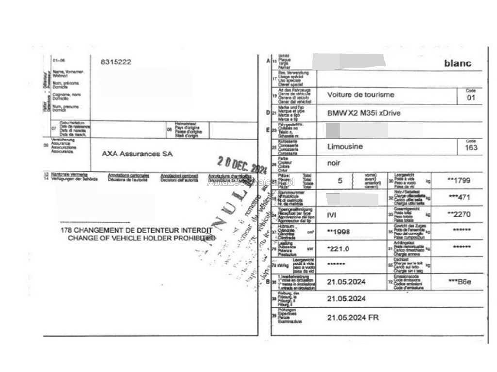 | Fahrzeugausweis | Vorhanden |