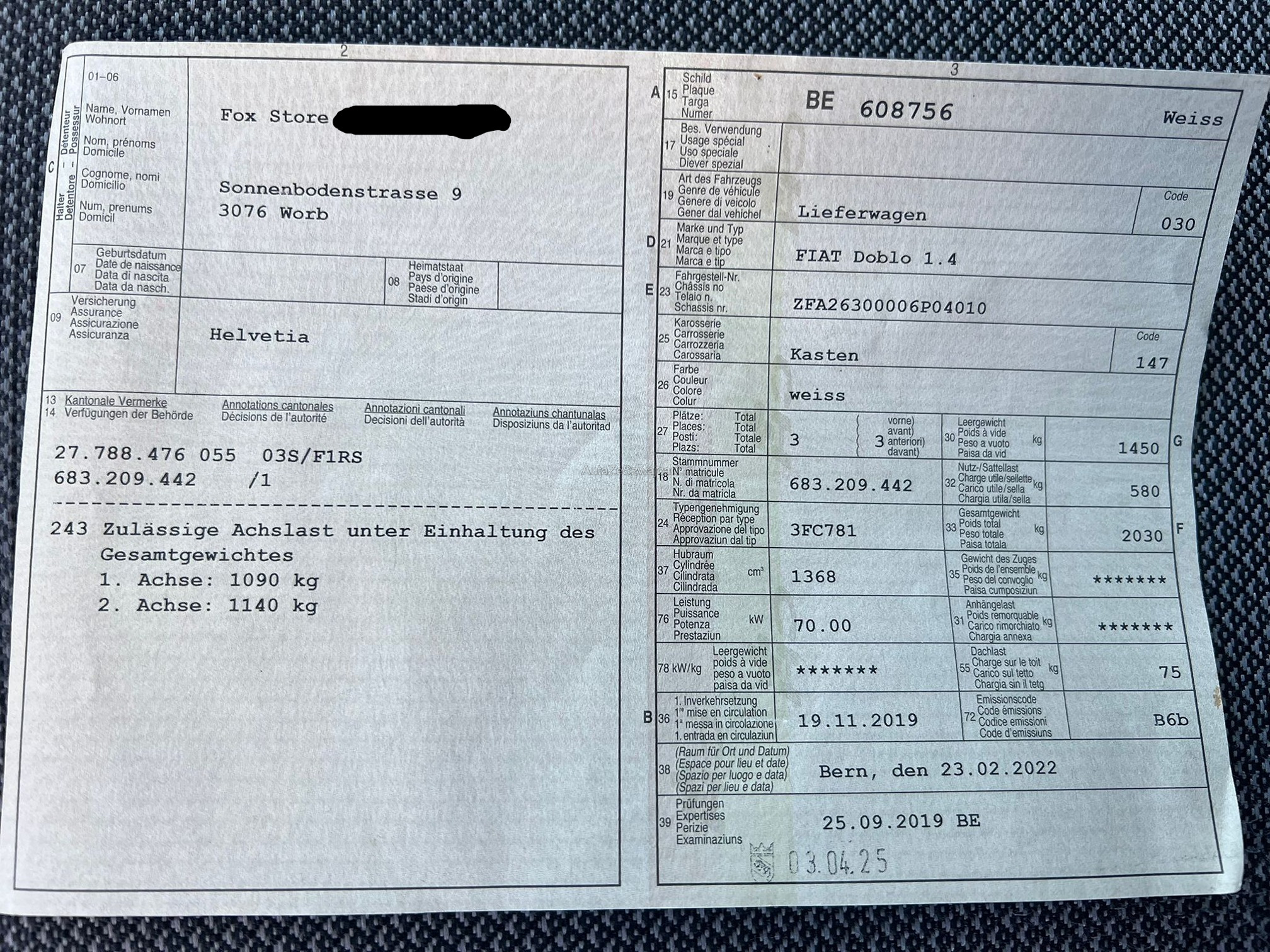 | Kommentar | Service neu gemacht. Der Verkauf erfolgt ab Platz und ohne jegliche Gewährleistung. Eine Sachmängelhaftung wird ausdrücklich ausgeschlossen. Bereifung, Zustand und Ausstattung entsprechen den auf den Fotos ersichtlichen Angaben. Mit dem Zuschlag an den Höchstbietenden gilt der Verkauf als verbindlich. Nachverhandlungen sind ausgeschlossen, auch wenn nachträglich nicht deklarierte Mängel festgestellt werden sollten. Das Fahrzeug muss innerhalb von 3 Tagen nach Zuschlag abgeholt und bezahlt werden. Ab dem 4. Tag wird eine Standgebühr von CHF 10.– pro Tag verrechnet. |