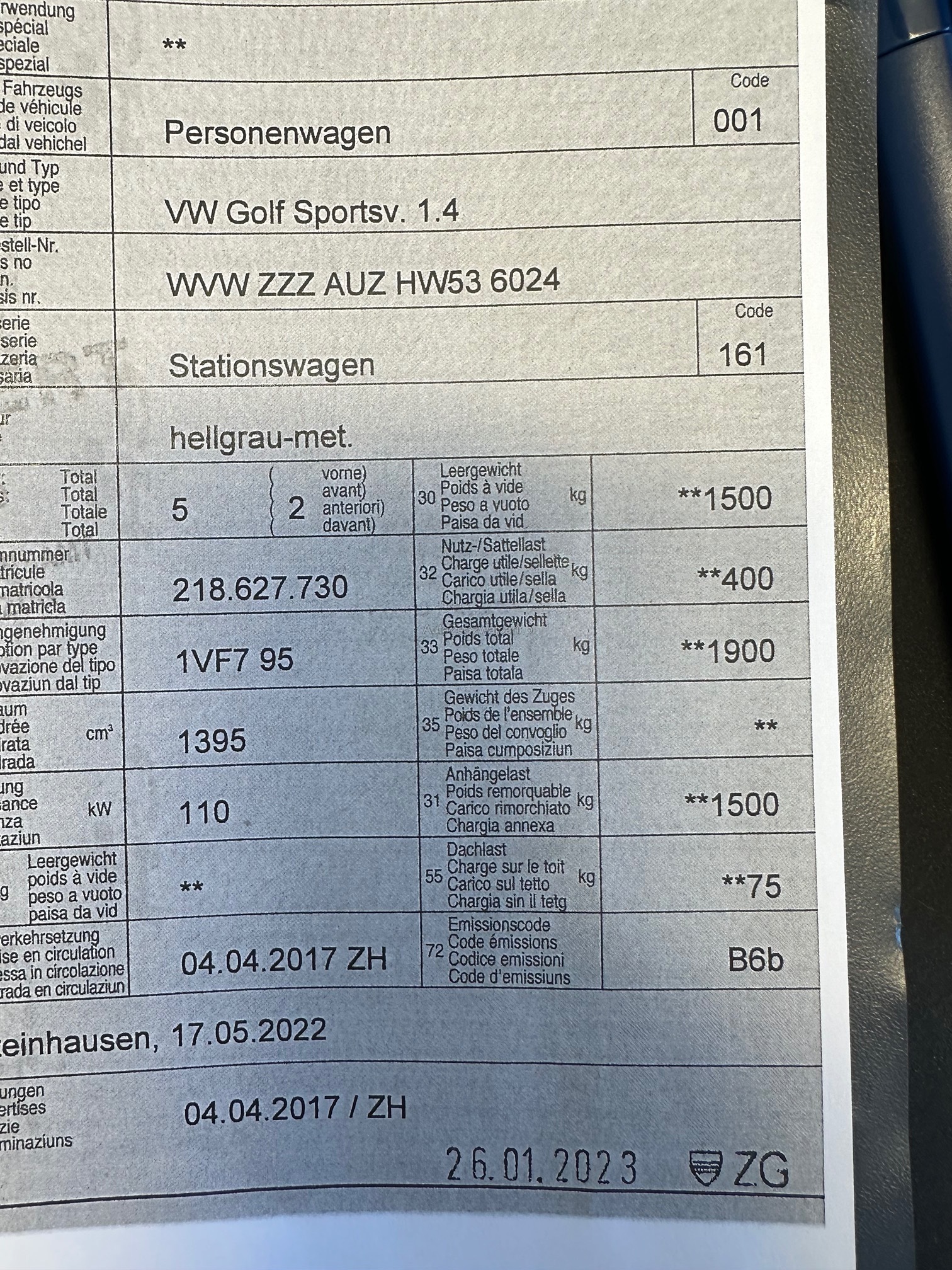 | Kommentar | Stossstange VR / Stossstange Hinten angefahren / Spiegelschale R angefahren Sehr gut ausgestattet, 1. Hand. Kein Werkstatttest durchgeführt, wird ab Platz ohne Garantie verkauft. Bei einer Fahrzeugbeschreibung kann immer etwas vergessen oder nicht gesehen werden. Das Risiko liegt somit vollumfänglich beim Käufer. Nach Zuschlag, keine Nachverhandlungen möglich. Ab Platz ohne Garantie, Wandelung und Minderung werden wegbedungen. |