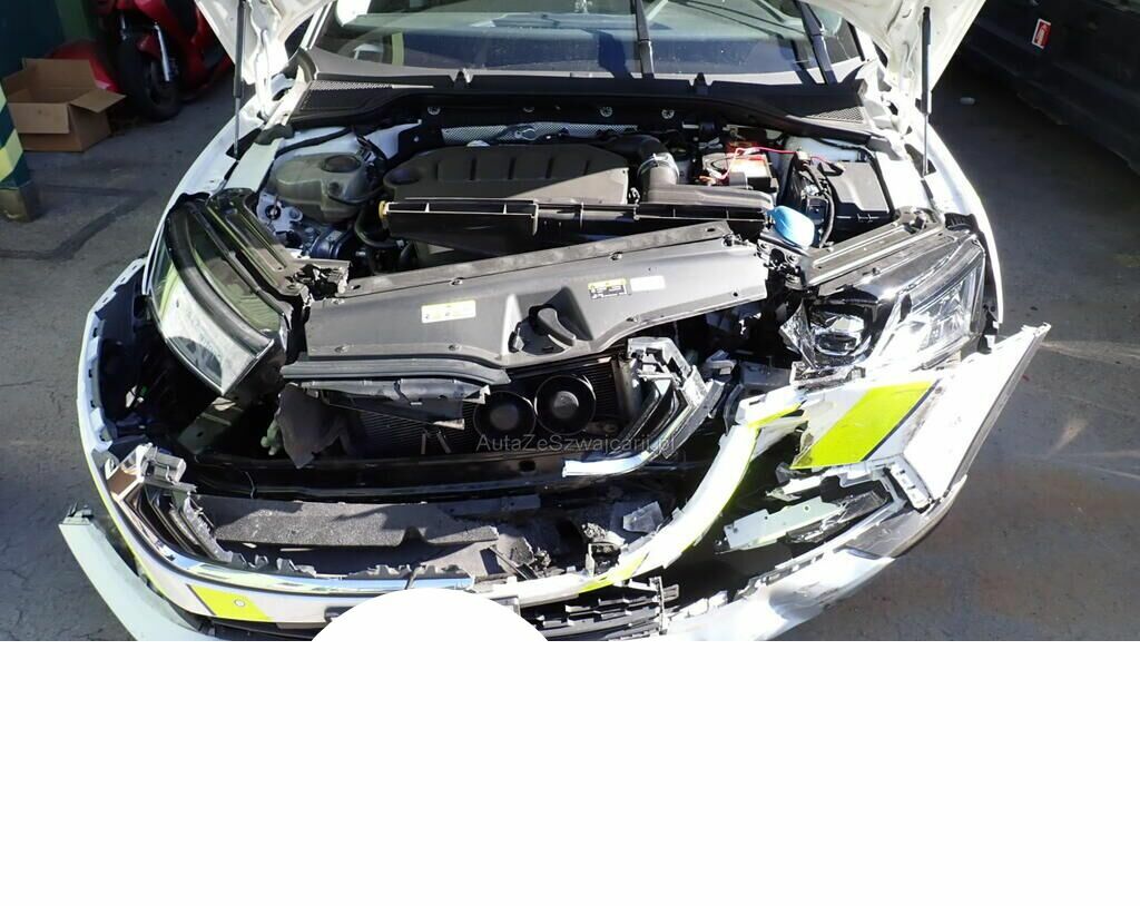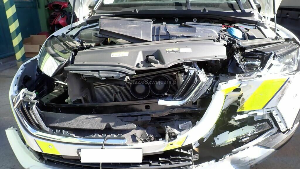 Aile avant droite, pare-chocs avant, calandre, phares avant, renfort, absorbeur, guides, conduits, longerons avant, joues d'ailes avant, capot, porte serrure, contres forts de porte serrure, radiateurs, condenseur, échangeurs, ventilateurs, capteurs PDC, capteur ACC, boitiers, compresseur de clim, filtre à air, réservoirs et pompes de réservoirs.