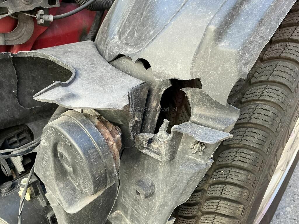 Capot et aile avant fortement enfoncés.