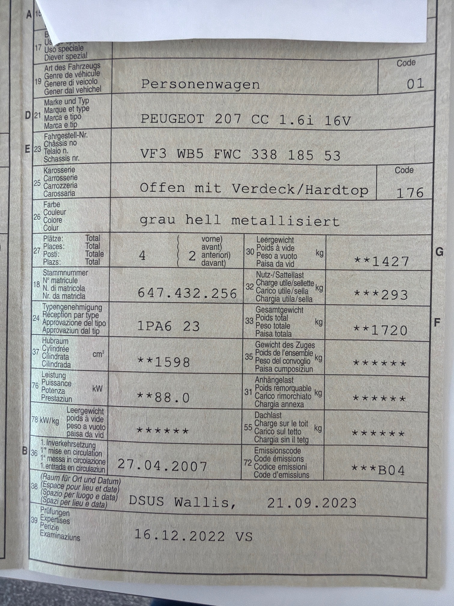 PEUGEOT 207 CC 1.6i 16V