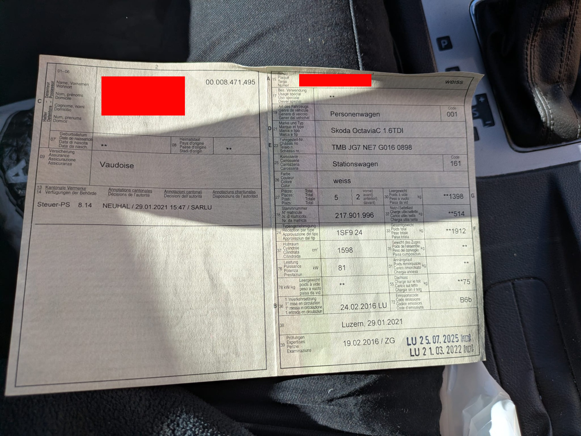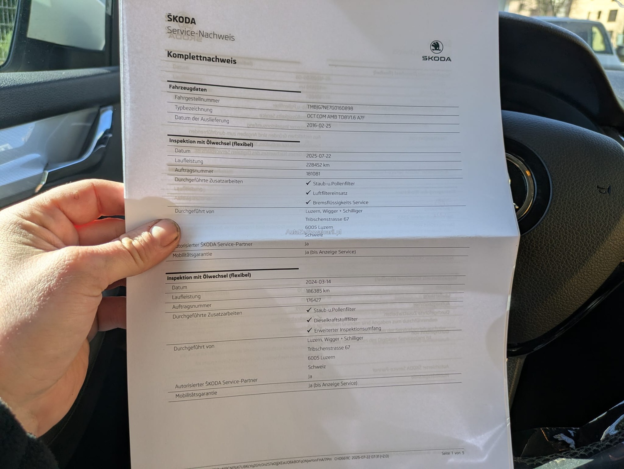 | Kommentar | Fahrzeug ist nicht Fahrbar. Späne im Dieselsystem. Diverse Dellen und Kratzer siehe Fotos weitere Mängel sind nicht ausgeschlossen. Ab platz ohne Garantie Wandlung oder Minderung sowie gesetzliche Gewährleistung weggebunden. Fahrzeug muss spätestens 7 Tage nach Verfügbarkeit abgeholt werden ansonsten werden Parkkosten von Fr 20.- pro Tag verrechnet. |