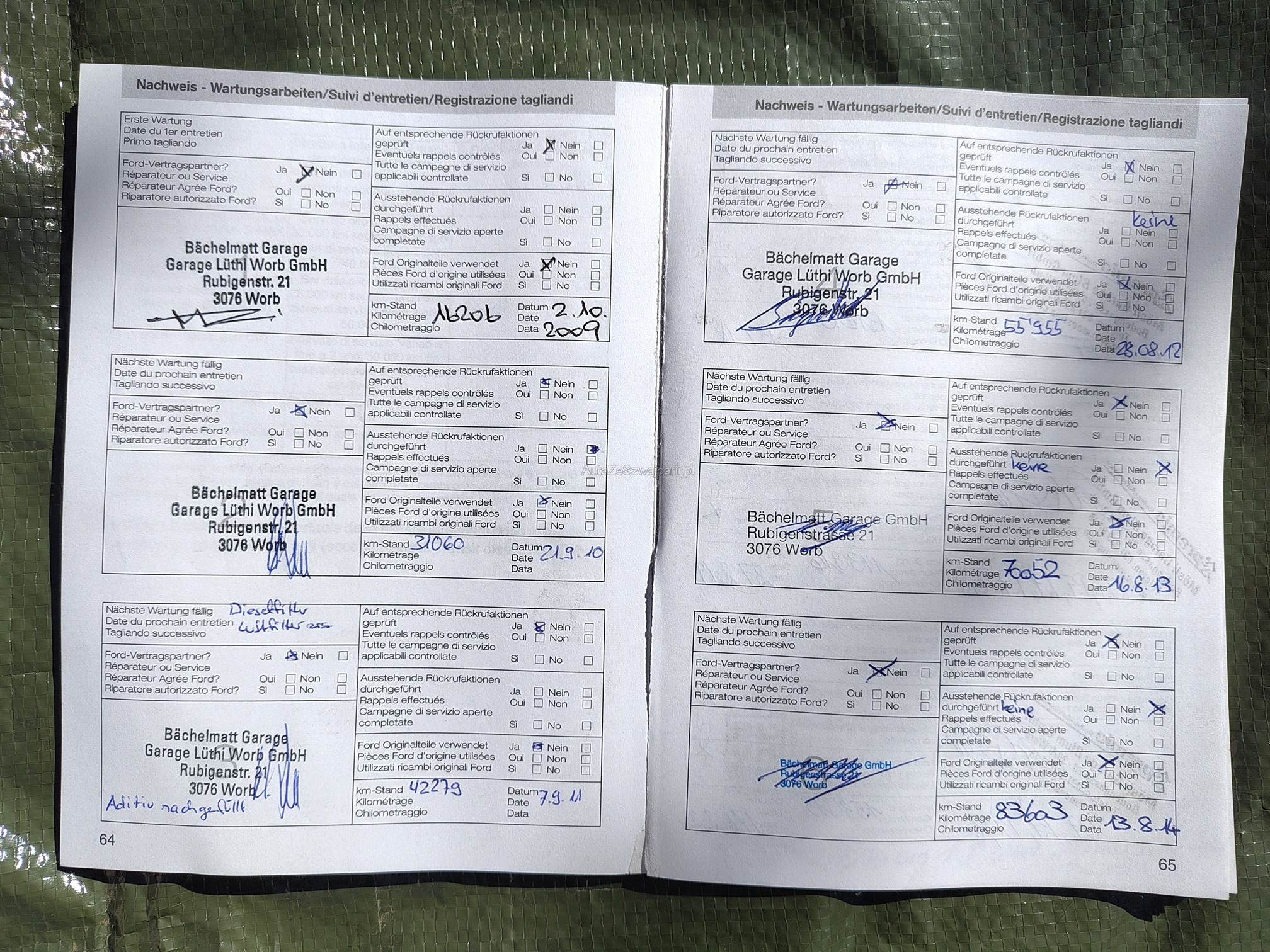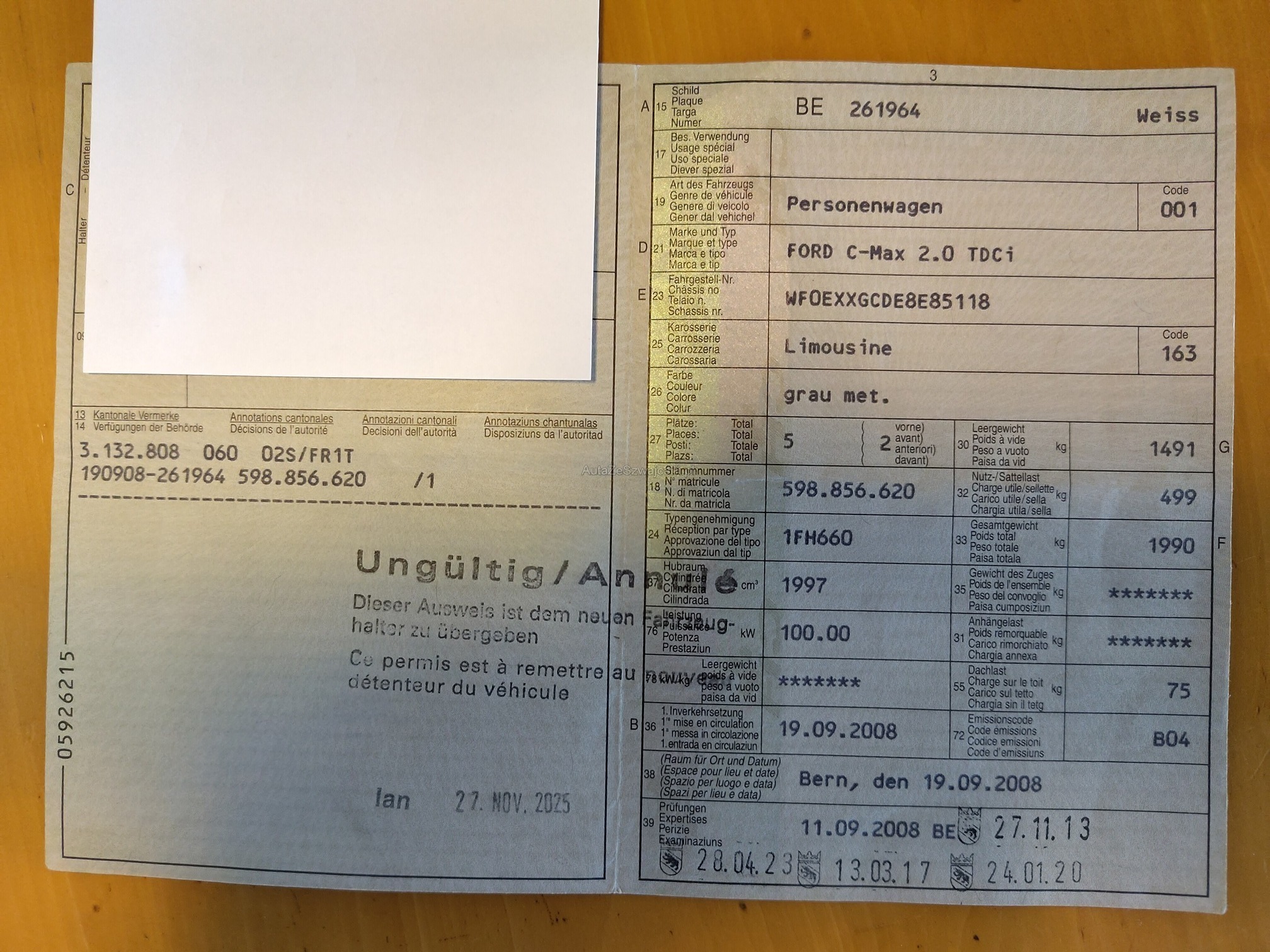 | Kommentar | DPF Messung wurde durchgeführt = i.O., Fahrzeug hat Rost an Kotflügel und Schwelle Links und Rechts, Bremsstaubschutzschild hinten links ist durchgerostet, Bremse Vorne hat dunkle Flecken (kann bei MFK beanstandet werden). Das Fahrzeug wurde nur kurz technisch geprüft; jegliche Haftung für weitere, unentdeckte Mängel wird wegbedungen. |