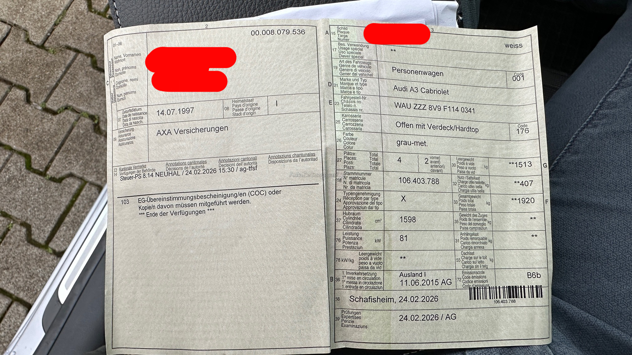 | Kommentar | Es wurde kein Werkstatttest durchgeführt. Kein separater DPF Test vorhanden - MFK 02.2026 |