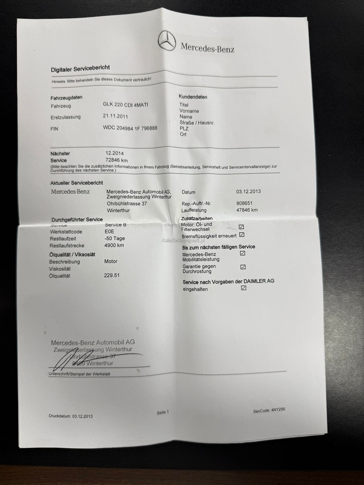 | Zahnriemen gewechselt | No |