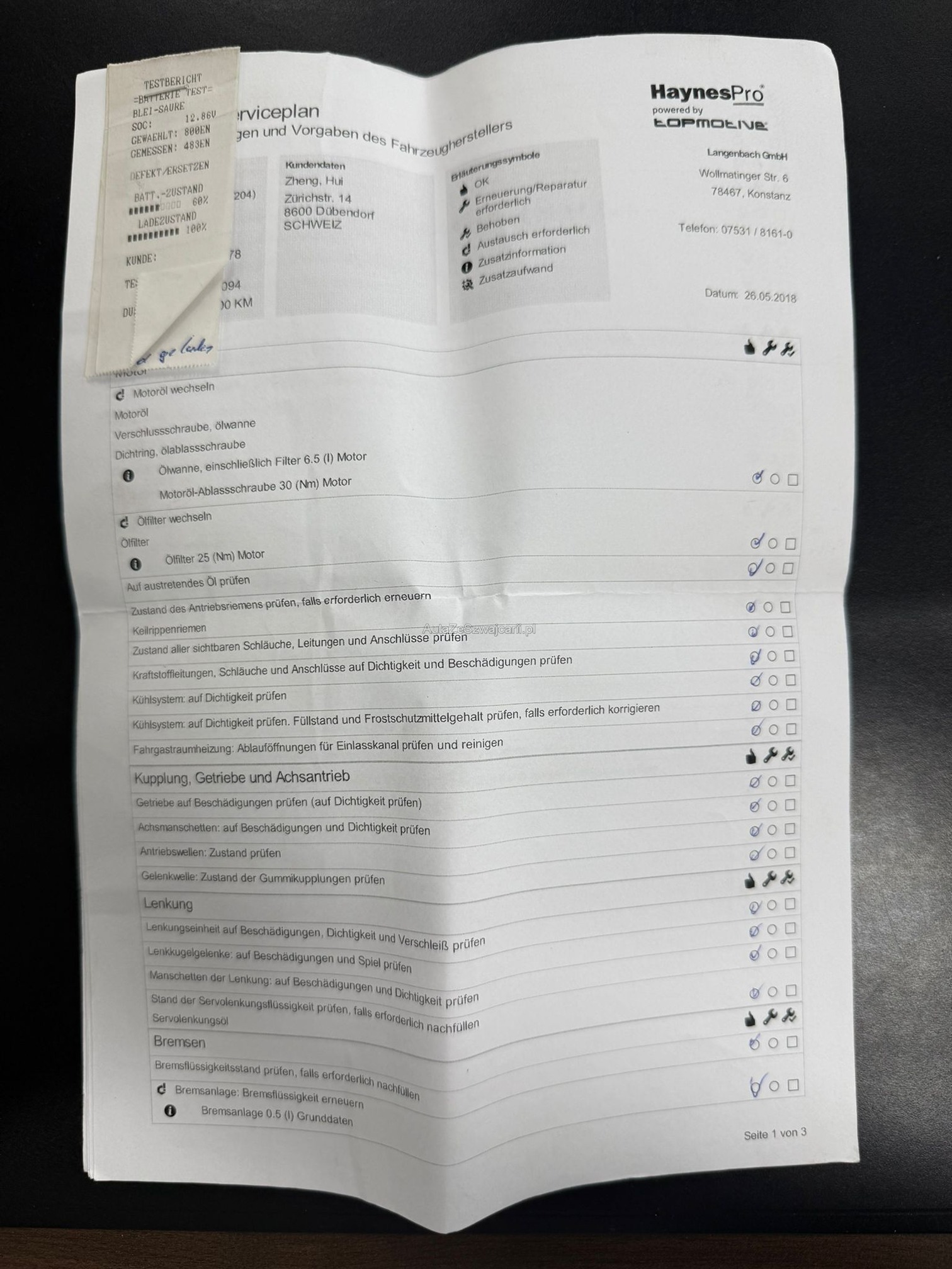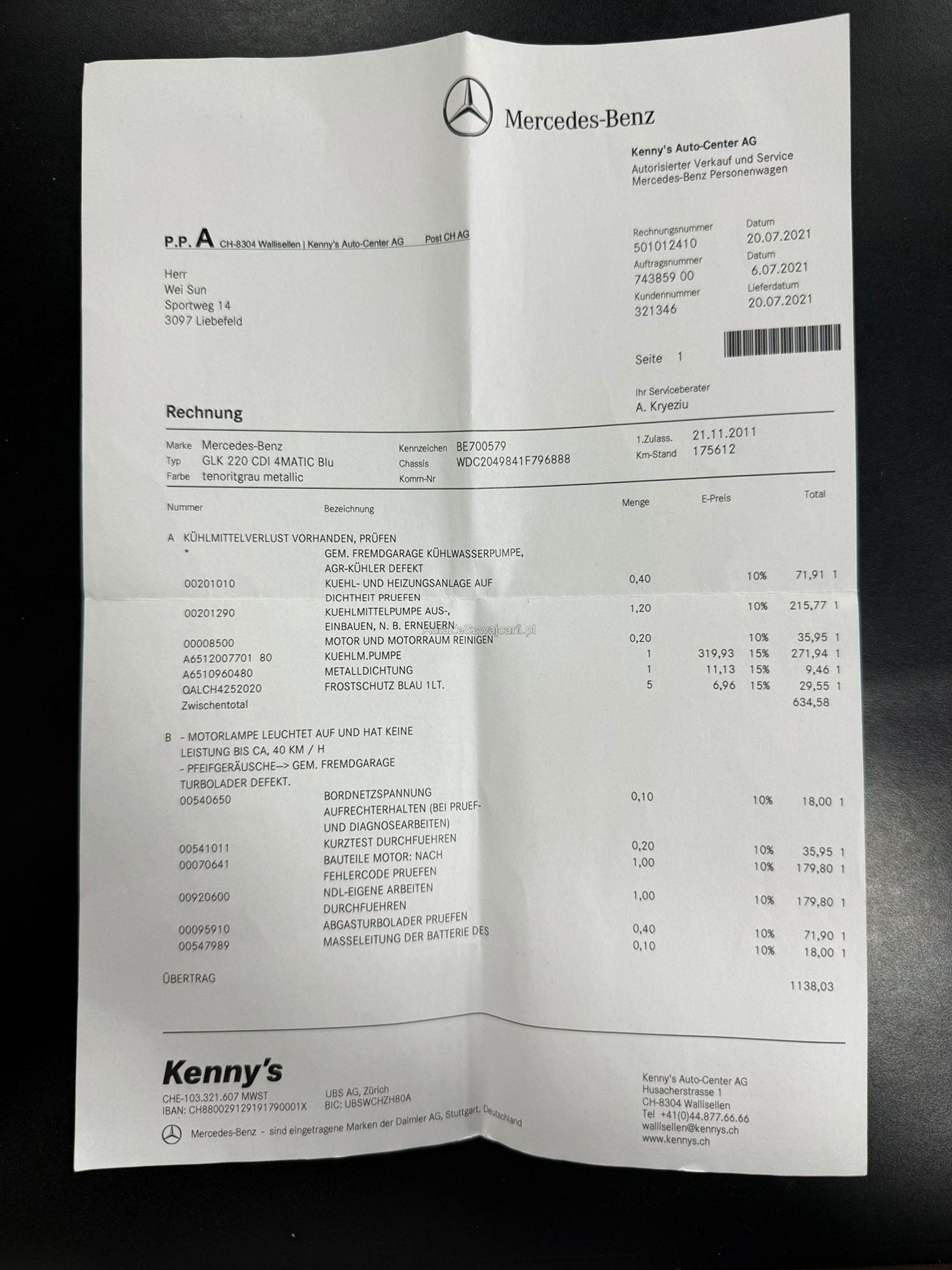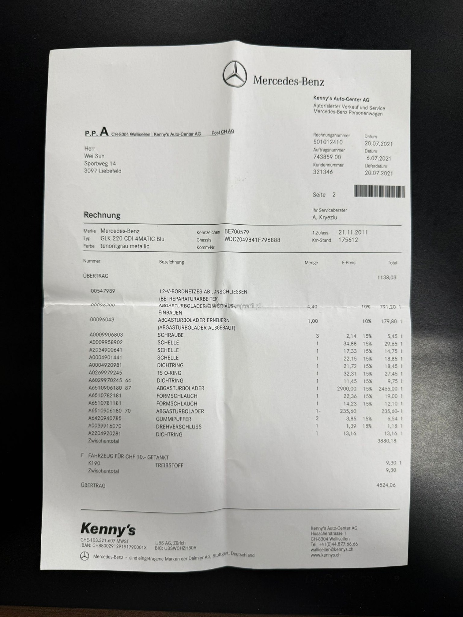 | Kommentar | Verkauf erfolgt ab Platz und ohne Garantie, insbesondere Wandelung und Minderung ausgeschlossen! Bei diesem Fahrzeug haben wir keinen Eintauschtest durchgeführt! DPF i.O. Automat und Motor funktionieren einwandfrei, bei der kurzen Probefahrt ist uns nichts aufgefallen. Beim fahren hört man ein Poltergeräusch von hinten evtl. Stossdämpfer. Service fällig, Carrosserie und Lack gemäss Bilder rundum beschädigt und verkratzt. |