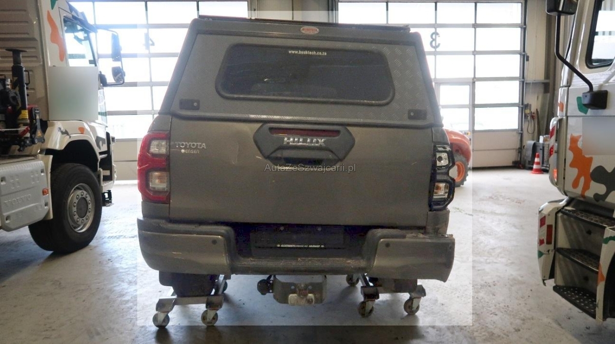 | Serienausstattung | Lenkrad: Lenkrad manuell höhenverstellbar und längsverstellbar, Fahrwerk: Komfortfahrwerk, Räder: Reserverad, Cupholder vorne, Airbag: Window-Kopfairbag für Fahrer und Beifahrer, Assist: Einparksystem vorne und hinten, Airbag: Seitenairbag für Fahrer und Beifahrer, Lenkrad: Lenkradfernbedienung für Radio (Bluetooth), Media: Connected / Android Auto / Apple CarPlay, Ladefläche mit Schutzrahmen zur Rückseite der Fahrerkabine, Unterfahrschutz, Kotschutzlappen vorne und hinten, Wegfahrsperre elektronisch, Klima: Elektronische 2-Zonen-Klimaautomatik, Dachhimmel schwarz, Aussenspiegel in Chrom, Laderaumauskleidung tief, Kunststoff schwarz, Garantie: Toyota Assistance 3 Jahre / Kilometer Unbegrenzt, Heckscheibenheizung, Türgriffe aussen in schwarz, Steckdose 220V, Airbag: Airbag Fahrer und Beifahrer, Media: JBL-Soundsystem mit 9 Lautsprechern, Elektronisches Stabilitäts-Programm (VSC/VDC), Assist: Pre Collision System (PCS) mit Fussgänger- und Fahrraderkennung, Lenkrad: Lenkrad und Schalthebelgriff in Leder, Licht: Abblendlichtausschaltverzögerung 'Follow me home', Limited Slip Differential (LSD) hinten, Kopfstützen vorne höhenverstellbar, Licht: Nebelscheinwerfer, Polster: Ledersitze perforiert, Sitze: Vordersitze heizbar, Innenspiegel abblendbar, Getriebe: 6-Stufen-Automat, Smart Entry-/Start-System, Licht: LED Scheinwerfer mit Leuchtweitenregulierung, Aussenspiegel rechts und links beheizt, elektrisch verstell- / und einklappbar, Airbag: Knie-Airbag für Fahrer, Elektrische Fensterheber vorne mit Komfortbetätigung und Einklemmschutz, Drehzahlmesser, Sitze: Kindersitzerkennung im Beifahrersitz, Assist: Berganfahrhilfe (Hill Assist Control - HAC), Sonnenblenden auf Fahrer- und Beifahrerseite, Steckdose 12V, ISOFIX-Befestigungspunkte für Kindersitz an den äusseren Rücksitzen, Trittbretter schwarz, Licht: LED-Tagfahrlicht, Frontgrill Umrandung in Chrom, Höhenverstellbare Gurten vorne, Media: Toyota Touch 8", Kotflügelverbreiterung, Stossstange vorne in Wagenfarbe, Servolenkung, Handschuhfach, Fahrwerk: Allradantrieb elektrisch zuschaltbar mit Differenzialsperre hinten und Geländeuntersetzung, Leuchtweitenregulierung von innen, Scheiben abgedunkelt, Toyota Garantie: 3 Jahre oder 100'000 km (ab 1. Inv.), Innenraumbeleuchtung, Sitze: Fahrersitz elektrisch verstellbar, Assist: 360 - Panoramakamera, Räder: 18" Leichtmetallfelgen 265/60/R18, Alarmanlage, Bodenteppiche, Assist: Adaptiver Tempomat (ACC), Zentralverriegelung mit Fernbedienung und Klappschlüssel, Assist: Spurwechselassistent, Ladefläche mit Befestigungshaken, aussenliegend, 12-Volt-Steckdose vorne, Gurtstraffer vorne, Lackierung: Uni-Lackierung, Scheibenwaschdüsen vorne beheizt, Antiblockiersystem (ABS), Licht: Nebelschlussleuchte, Partikelfilter und Oxydationskatalysator, Kühlergrill schwarz matt, Media: Navigationssystem Toyota Touch 2 Go inkl. 3 Jahre gratis Kartenupdate, Assist: Verkehrsschild-Erkennungssystem, Assist: Anhänger Stabilisierungkontrolle TSA |