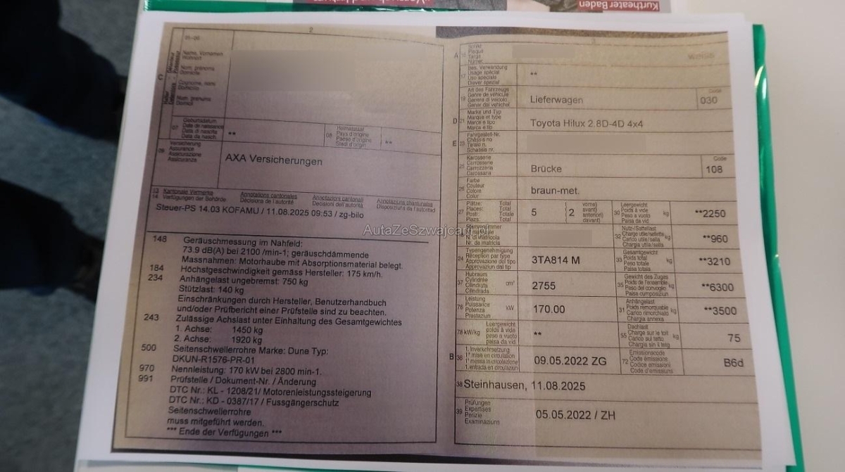 | Fahrzeugausweis | Vorhanden |