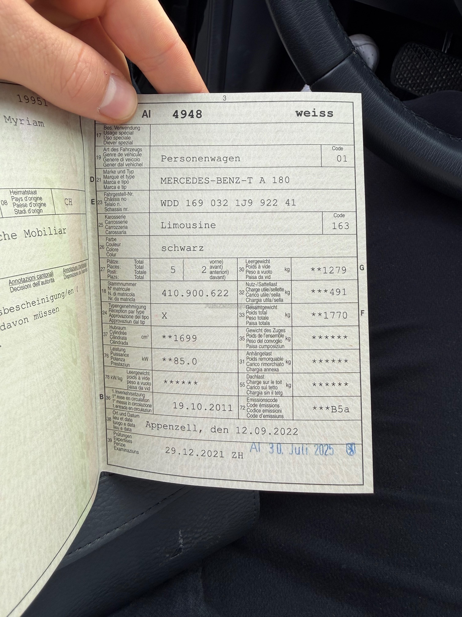 | Kommentar | Fahrzeug befindet sich in einem technischen sowie optischen Top-Zustand (ausgenommen, Beule Beifahrertüre, Seitenspiegel Beifahrertüre, Motorhaube leichte Kratzer). Werkstattest wurde durchgeführt und es wurden keine technische Mängel festgestellt. |