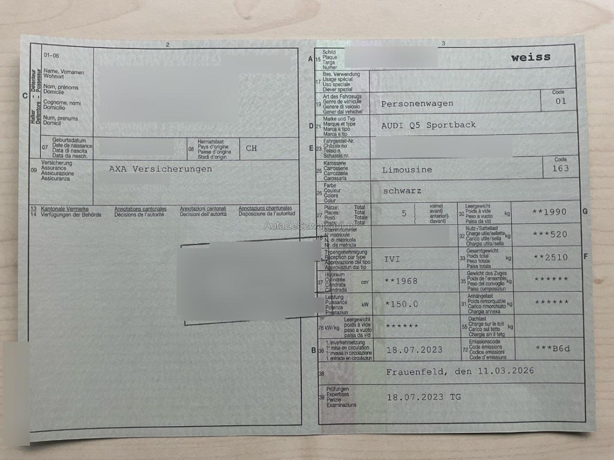 | Fahrzeugausweis | Vorhanden |