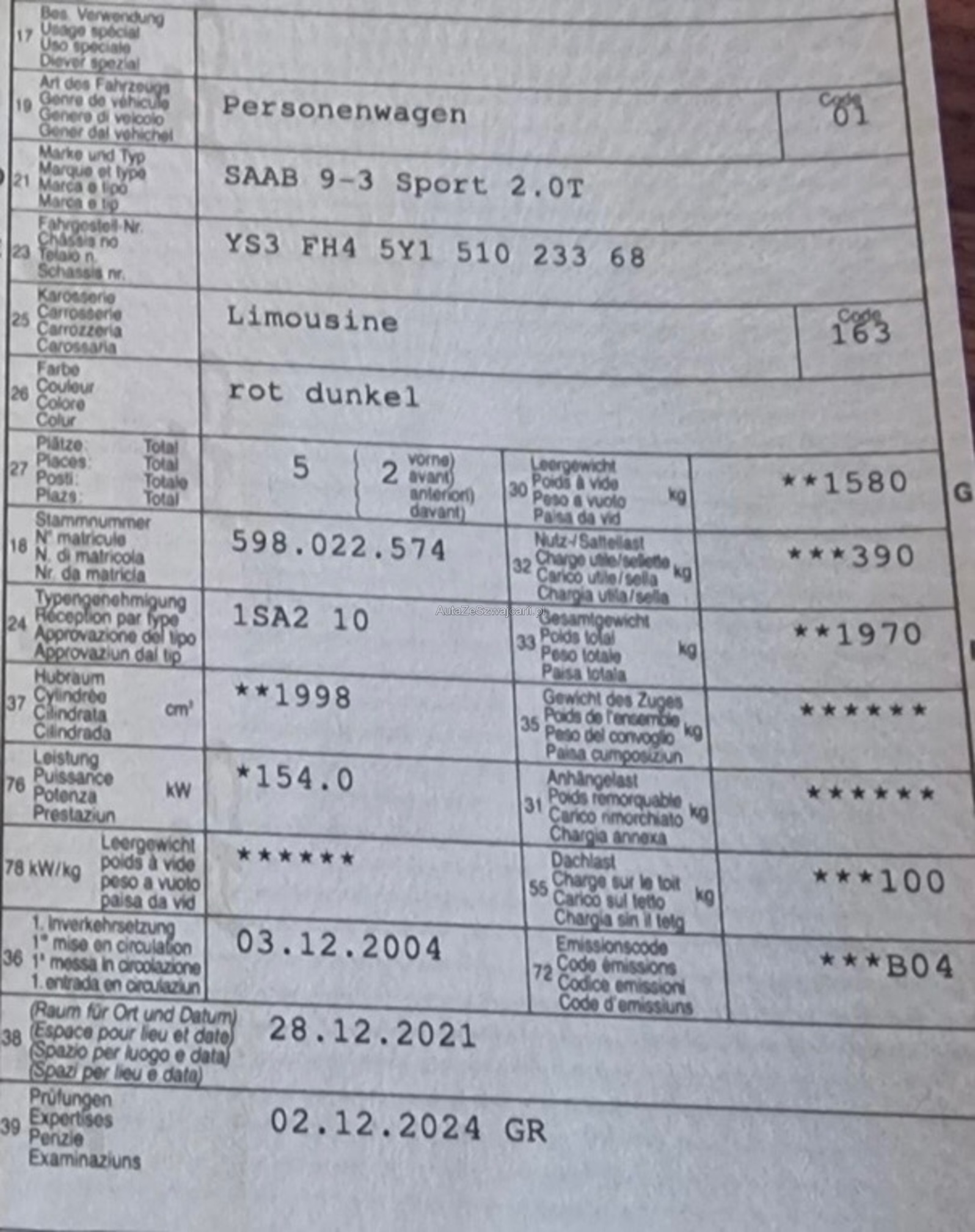 | VIN | YS3XXX |