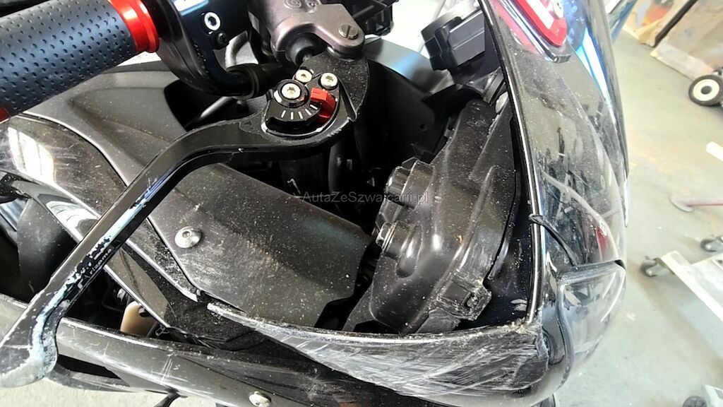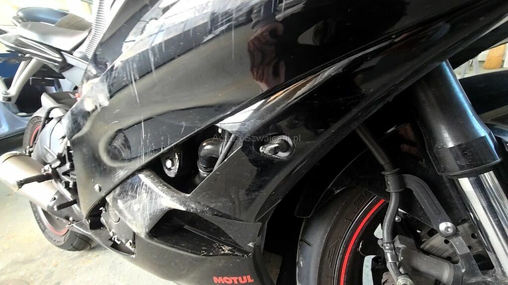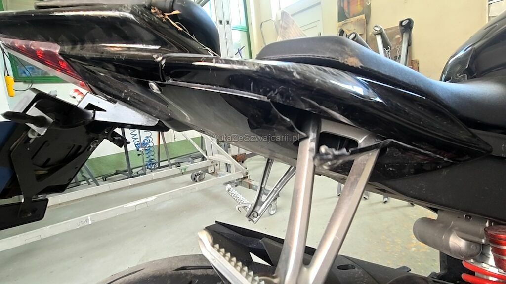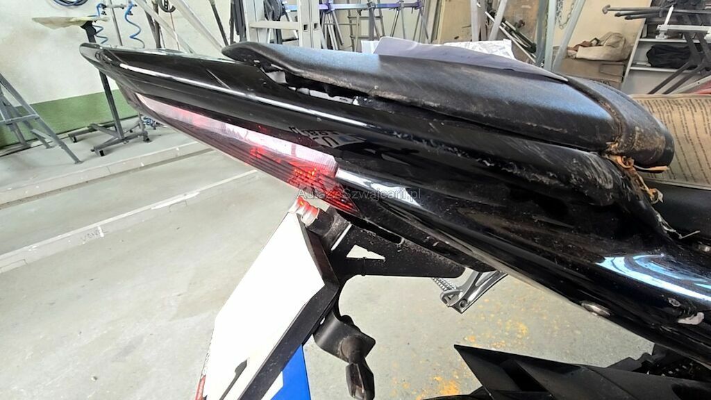 Rechte Seite zerkratzt, Diverse Verschalungen, Bremshebel, Blinker, Lenkergriff rechts, Gashebel, Lenker mit Lager, Fussrasten, Auspuff, Sitze, Scheinwerfer, Getriebedeckel, Tank Scheinwerfer, Rahmen, usw. zerkratzt und gerissen.