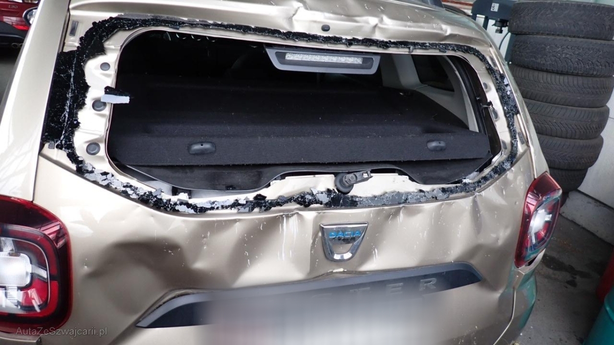 | Schadensbeschreibung | Aile avant, porte avant, charnières de porte avant et cache d'aile avant gauche. Hayon, lunette, pare-chocs arrière, spoiler arrière, échappement, crochet d'attelage, jupe arrière, longerons arrière, aile arrière droite et gauche. |