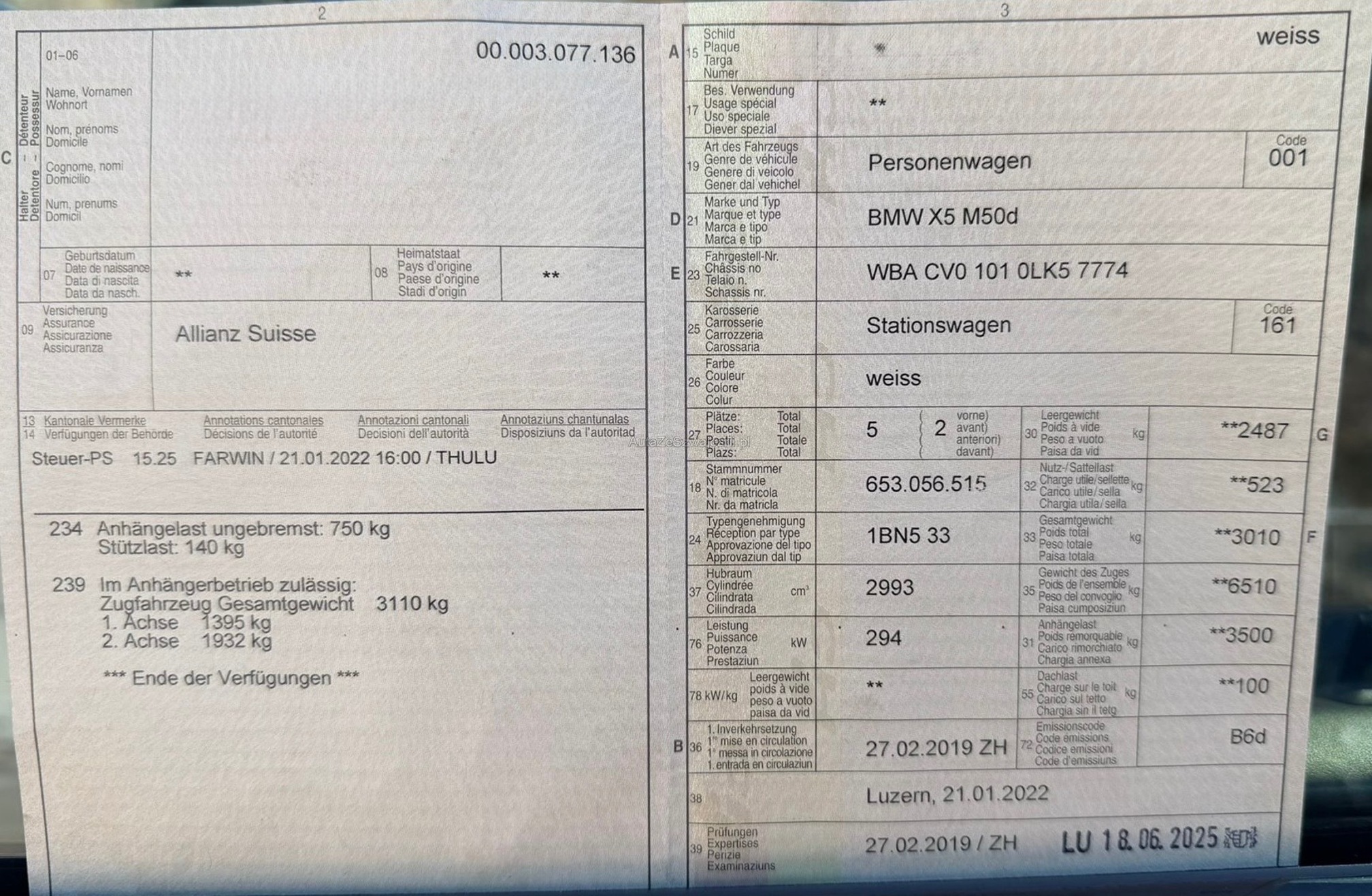 | Kommentar | AB MFK 06.2025 CH Fahrzeug aus erster Hand. Alle Servicearbeiten wurden bei BMW durchgeführt. Unsere Fahrzeuge wurden keiner Prüfung unterzogen, Fahrzeugkauf auf eigenes Risiko ab Platz ohne Nachwährschaft. Das Gewährleisten für Sachmängel wird weggegangen. Fahrzeugbereifung, Fahrzeugzustand und Ausstattung gemäss Bildern. |