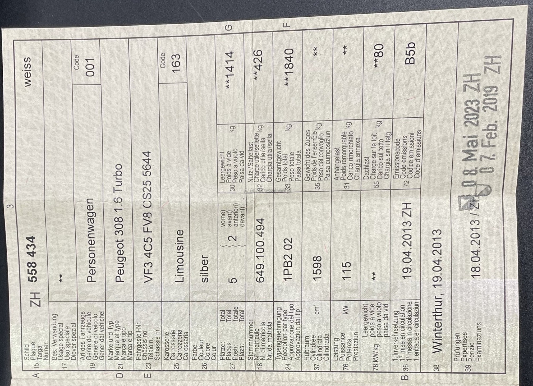| Kommentar | Hat vorne links Stossstange einen Riess. ca 20 cm lang. |
