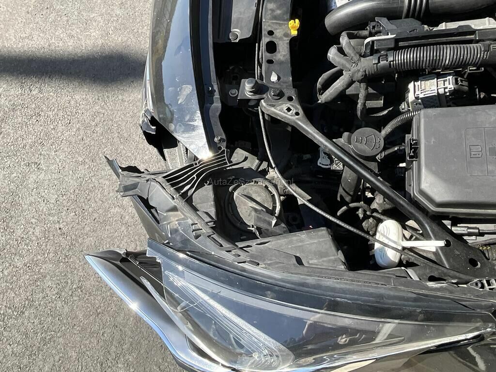 Pare-chocs, phare, supports, calandre, aile, moulures, coquille et renfort endommagés.