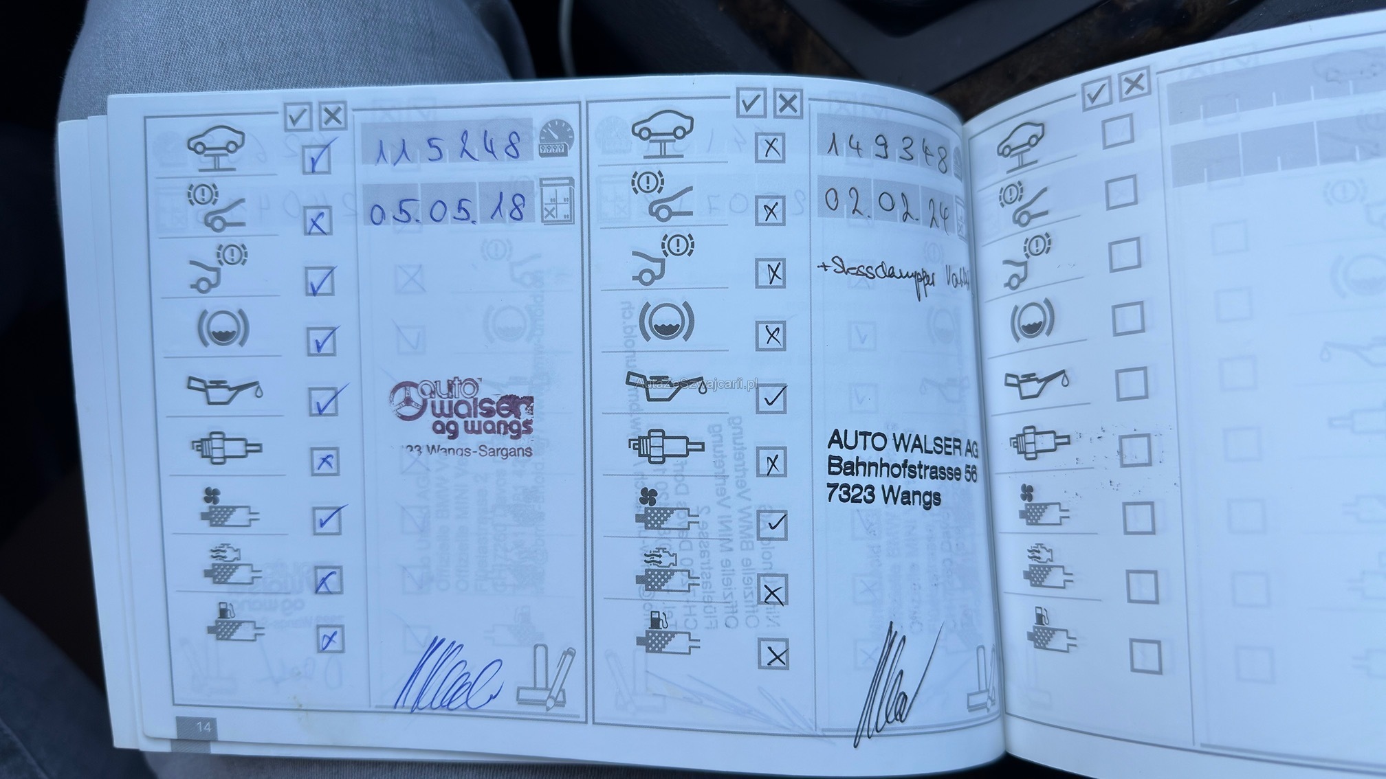 | Kommentar | Licht hinten rechts innen defekt, Dachhimmel Dachfenster defekt ( Führung ), Fensterheber hinten links defekt. Fahrzeug in Betrieb, keine Lampen leuchten, ( ausser wegen Lampe HR ), keine weitere technische Prüfung gemacht M PD71 X3 3.0sd 76200.00 P 0475 BLACK SAPPHIRE METALLIC 1010.00 F LUD3 LEDER NEVADA/D3 SATTELBRAUN 3270.00 S 01CA SELEKTION COP RELEVANTER FAHRZEUGE 0.00 S 01CB CO2 UMFANG 0.00 S 0205 AUTOMATIC GETRIEBE 0.00 S 0216 SERVOTRONIC 380.00 S 0225 SERIENFAHRWERK 0.00 S 0249 MULTIFUNKTION FUER LENKRAD 0.00 S 02ML M LM RAEDER DOPPELSP. 192 M MISCHB. 0.00 S 02PA RADSCHRAUBENSICHERUNG 0.00 S 0302 ALARMANLAGE 690.00 S 0320 MODELLSCHRIFTZUG ENTFALL 0.00 S 0337 M SPORTPAKET 4510.00 S 0386 DACHRELING 350.00 S 0402 PANORAMA GLASDACH 2170.00 S 0413 GEPAECKRAUMTRENNETZ 0.00 S 0423 FUSSMATTEN IN VELOURS 0.00 S 0428 WARNDREIECK 0.00 S 0430 INNEN- UND AUSSENSPIEGELPAKET 200.00 S 0431 INNENSPIEGEL,AUTOMATISCH ABBLENDEND 0.00 S 0459 SITZVERSTELLUNG, ELEKTR.MIT MEMORY 1880.00 S 0464 SKISACK 0.00 S 0473 ARMAUFLAGE VORN 0.00 S 0481 SPORTSITZE FUER FAHRER/BEIFAHRER 0.00 S 0493 ABLAGENPAKET 0.00 S 0494 SITZHEIZUNG FUER FAHRER/BEIFAHRER 0.00 S 04AS EDELHOLZAUSF. PAPPEL MASER GRAU 660.00 S 0502 SCHEINWERFER-WASCHANLAGE 0.00 S 0508 PARK DISTANCE CONTROL (PDC) 0.00 S 0521 REGENSENSOR 0.00 S 0522 XENON-LICHT 1420.00 S 0524 ADAPTIVES KURVENLICHT 680.00 S 0534 KLIMAAUTOMATIK 0.00 S 0548 KILOMETERTACHO 0.00 S 0563 LICHTPAKET 360.00 S 0609 NAVIGATIONSSYSTEM PROFESSIONAL 3160.00 S 0628 KOMMUNIKATIONSPAKET 1110.00 S 0644 HANDY VORB. MIT BLUETOOTH-SCHNITTS. 0.00 S 0672 CD WECHSLER 6-FACH 0.00 S 0677 HIFI SYSTEM PROFESSIONAL 1550.00 S 0710 M LEDERLENKRAD 0.00 S 0715 M AERODYNAMIKPAKET 0.00 S 0760 M HOCHGLANZ SHADOW LINE 0.00 S 0761 INDIVIDUAL SONNENSCHUTZVERGLASUNG 590.00 S 0775 M DACHHIMMEL ANTHRAZIT 0.00 S 07AY COMFORT PAKET I.V.M M SPORTPAKET 1800.00 S 0840 HOCHGESCHWINDIGKEITSABSTIMMUNG 0.00 S 0851 SPRACHVERSION DEUTSCH 0.00 S 0863 SERVICE KONTAKT-FLYER EUROPA 0.00 S 0879 DEUTSCH / BORDLITERATUR 0.00 S 0896 TAGFAHRLICHTSCHALTUNG 0.00 S 08SP COP STEUERUNG 0.00 S 0962 KENNZEICHENTRAEGER VORNE ENTFALL 0.00 Total Sonderausstattung 25790.00 Total Neupreis 101990.00 |