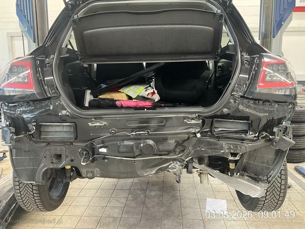 | Schadensbeschreibung | Beschreibung der Schäden: Heck mitte-rechts stark eingedrückt; Kofferboden deformiert; Heckdeckel unten leicht beschädigt; Auspuffanlage gestaucht; Fehlercode-Anzeige B150A-13 + B1A11-00 |