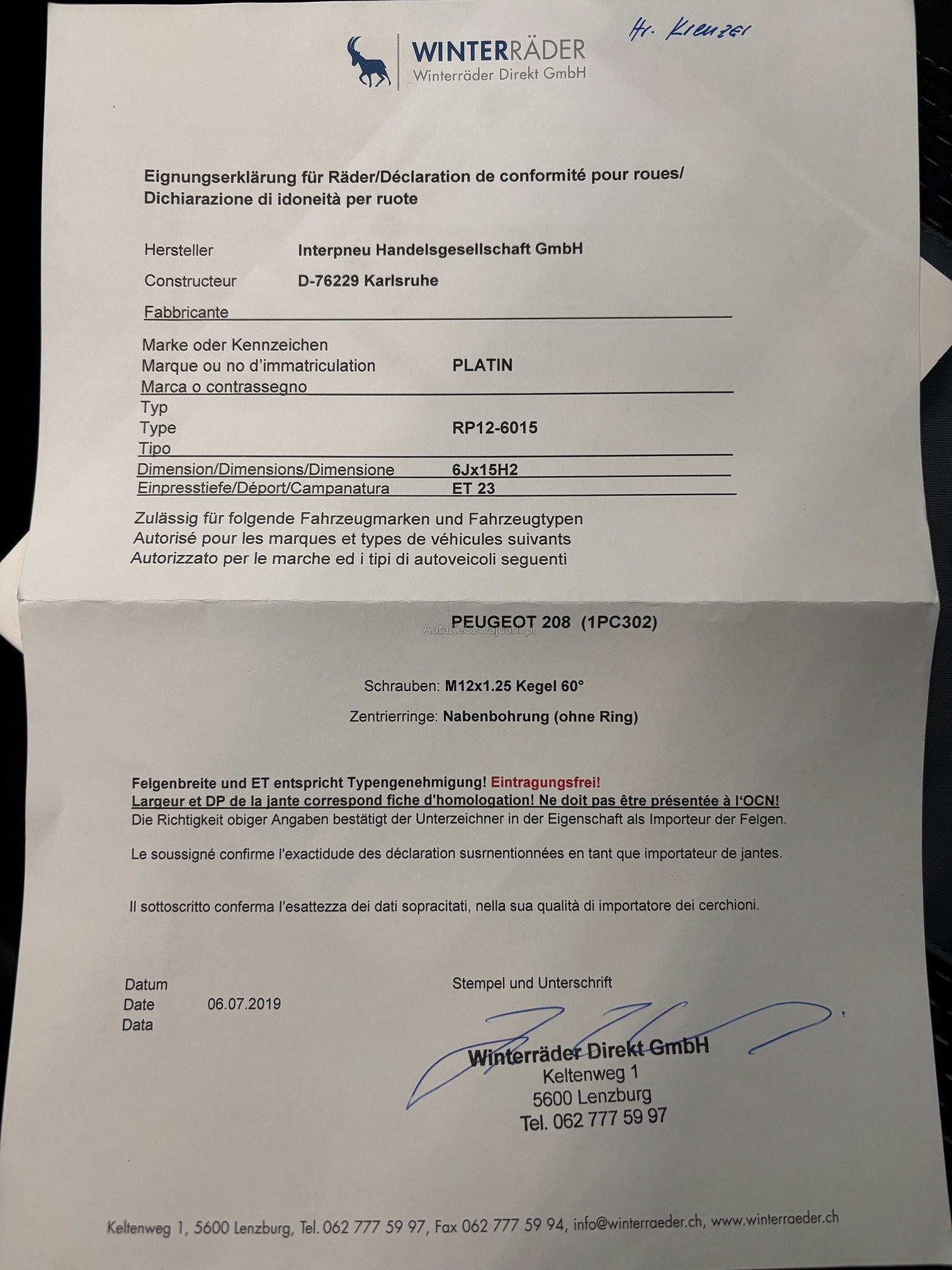 | Komplett mit Sommer- und Winterreifen | Yes |