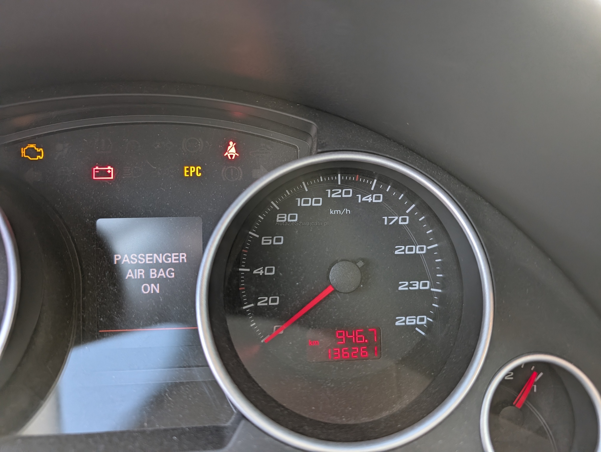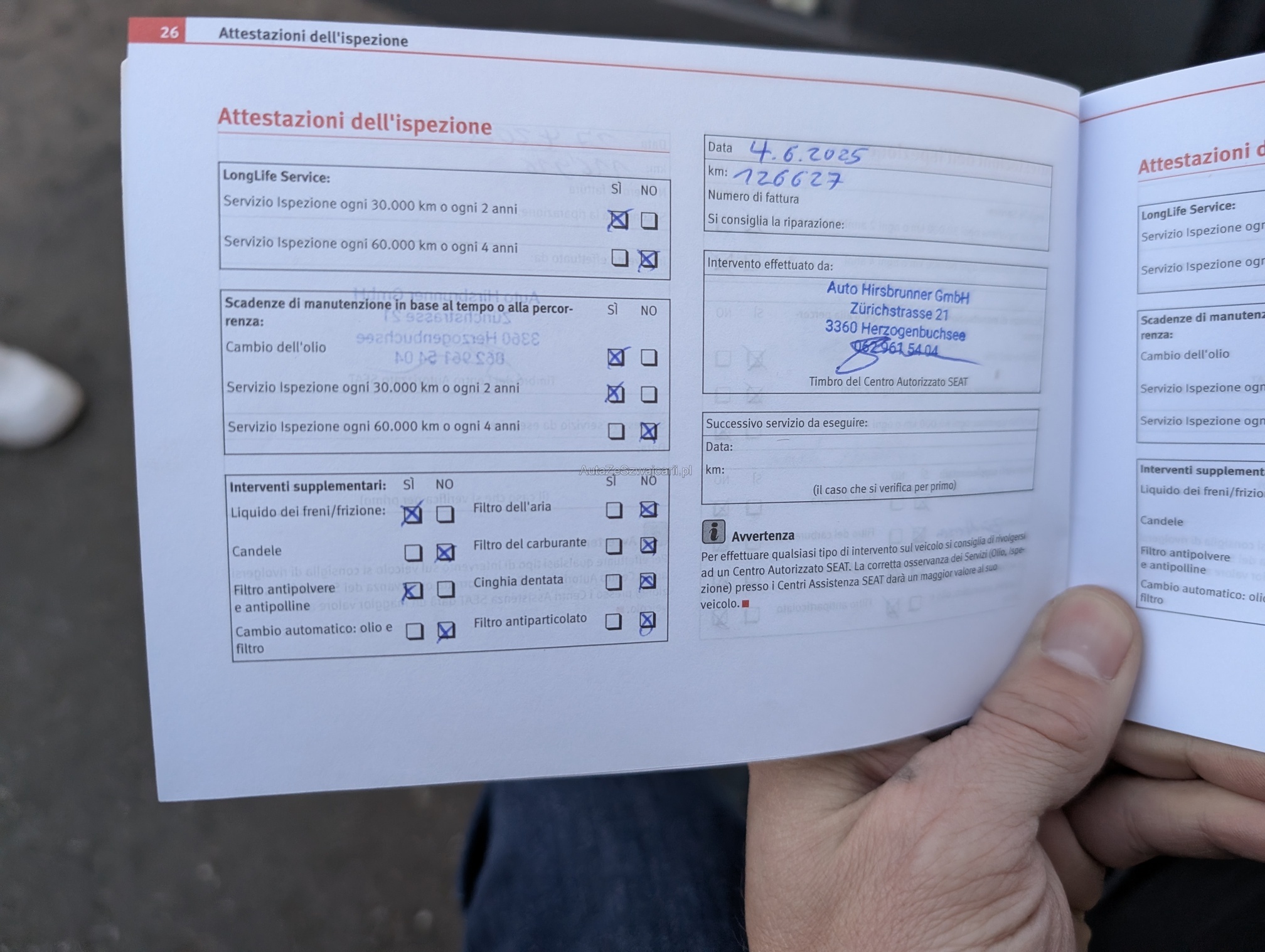 | Kommentar | Keine Eintauschkontrolle vorgenommen. Fahrertüre hat vertikale Dellen, auf Fotos schwierig sichtbar. Beifahrerseite diiverse Kratzer, siehe Fotos. Gemäss Aussage des Kunden braucht der Motor etwas Oel. Er konnte aber über die Menge keine Auskunft geben. Keine Garantie, keine gesetzliche Gewährleistung. Wandelungen und Minderungen ausgeschlossen. |