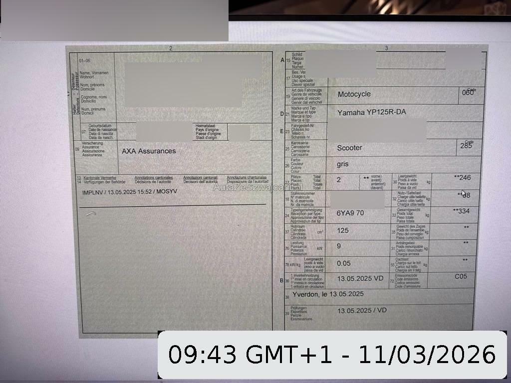| Fahrzeugausweis | Vorhanden |