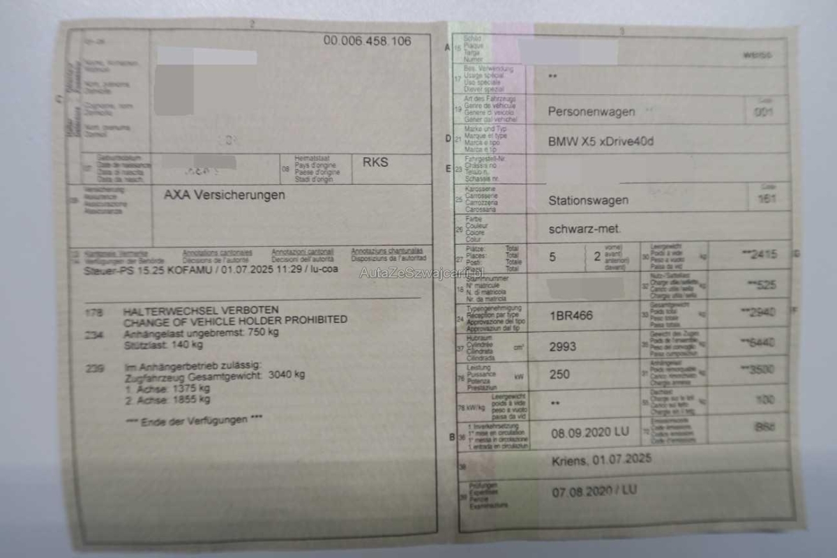| Fahrzeugausweis | Vorhanden |