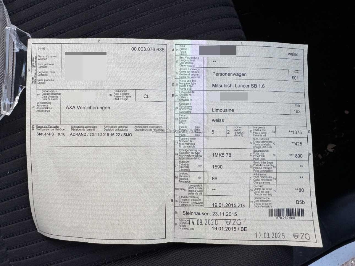 | Fahrzeugausweis | Vorhanden |
