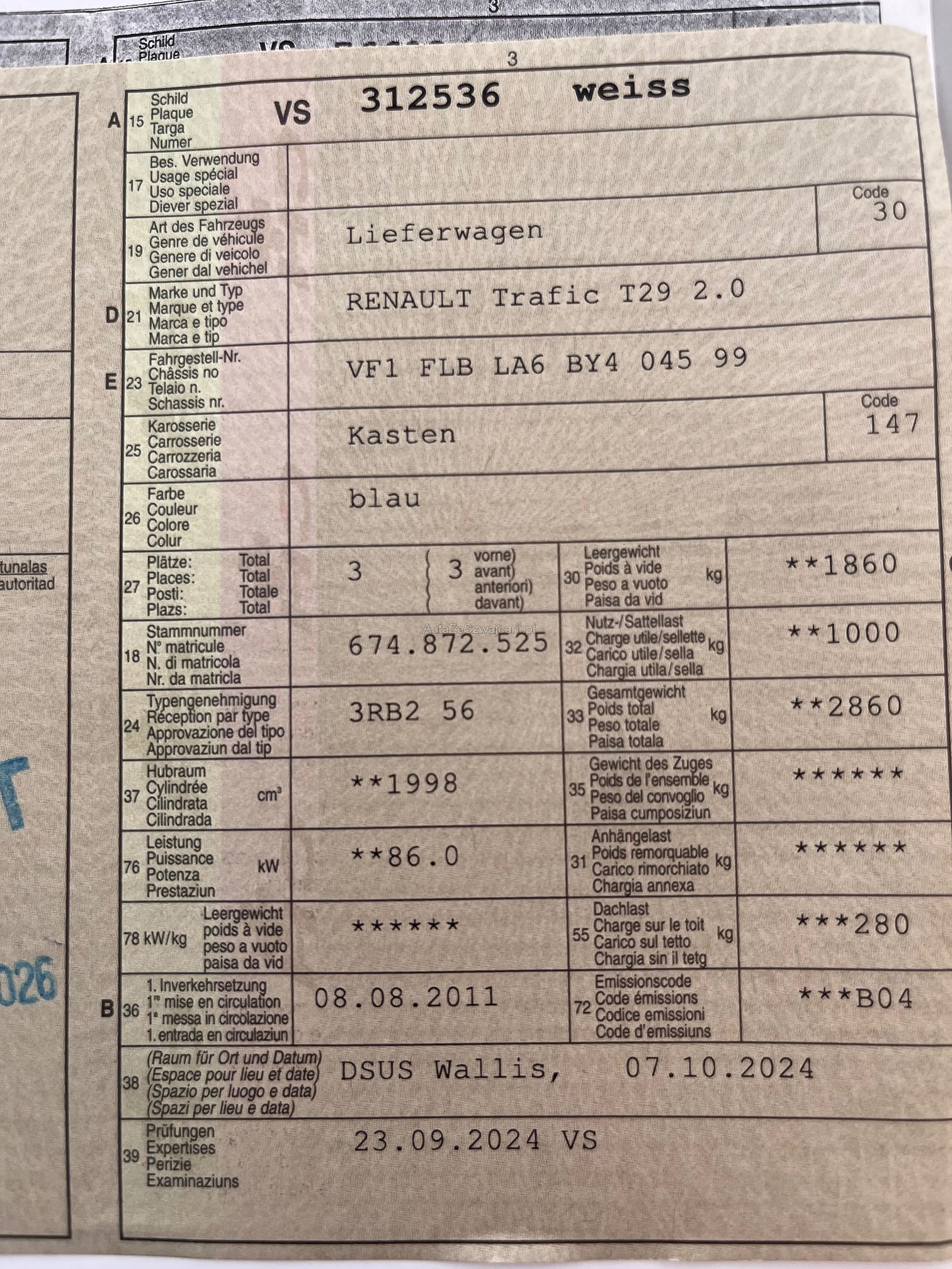 | Kommentar | Karosserie ist nicht sauber Hinweis zum Fahrzeugverkauf Es wurde keinem Werkstatttest durchgeführt. Eine Überprüfung sämtlicher Funktionen hat nicht stattgefunden. Für sichtbare sowie nicht sichtbare Mängel wird keinerlei Haftung übernommen. Der Verkauf erfolgt ab Platz, ohne Garantie oder Gewährleistung. Jegliche Ansprüche auf Wandelung oder Minderung sind ausdrücklich ausgeschlossen. Nach Zuschlag bzw. Kaufabschluss sind Nachverhandlungen ausgeschlossen, auch im Falle nachträglich entdeckter und nicht deklarierter Mängel. Das Risiko trägt vollumfänglich der Käufer. |