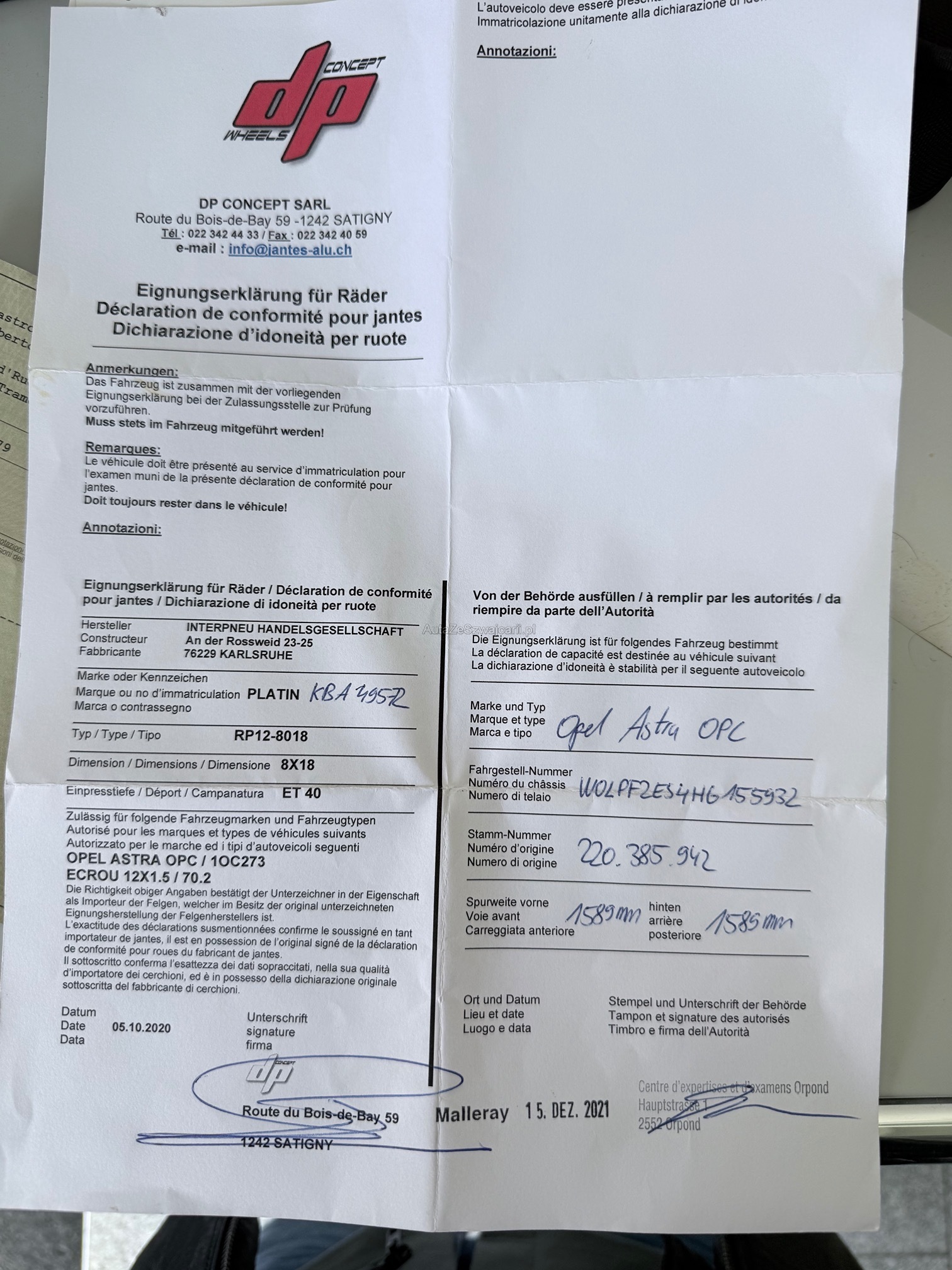 | Komplett mit Sommer- und Winterreifen | Yes |