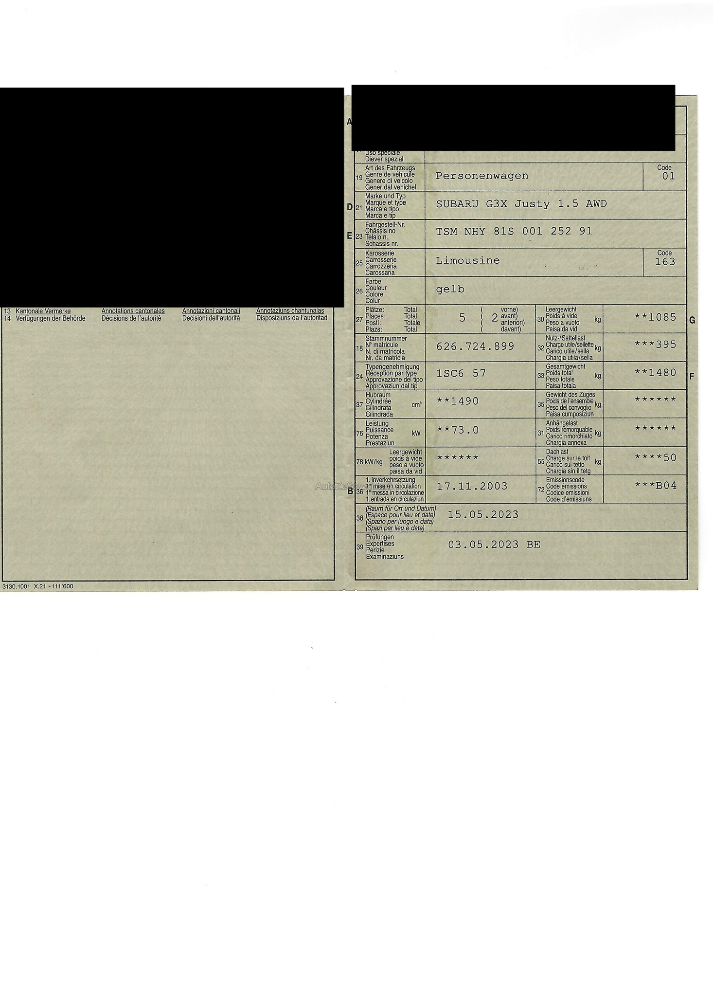 | Zahnriemen gewechselt | No |