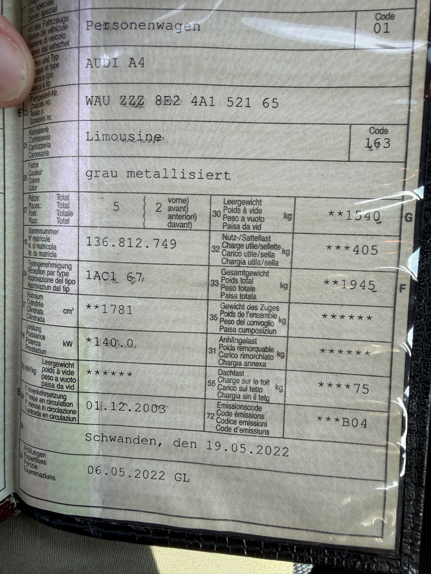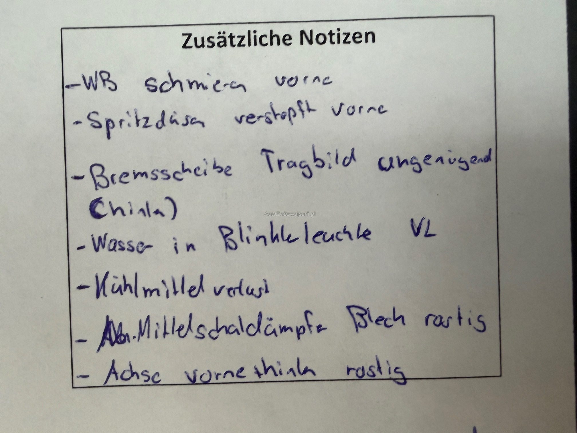 | Kommentar | FHZ ist noch im Kundenbesitz Siehe Bilder und Werkstatttest. Alle festgestellte Mängel im Eintauschtest sichtbar |