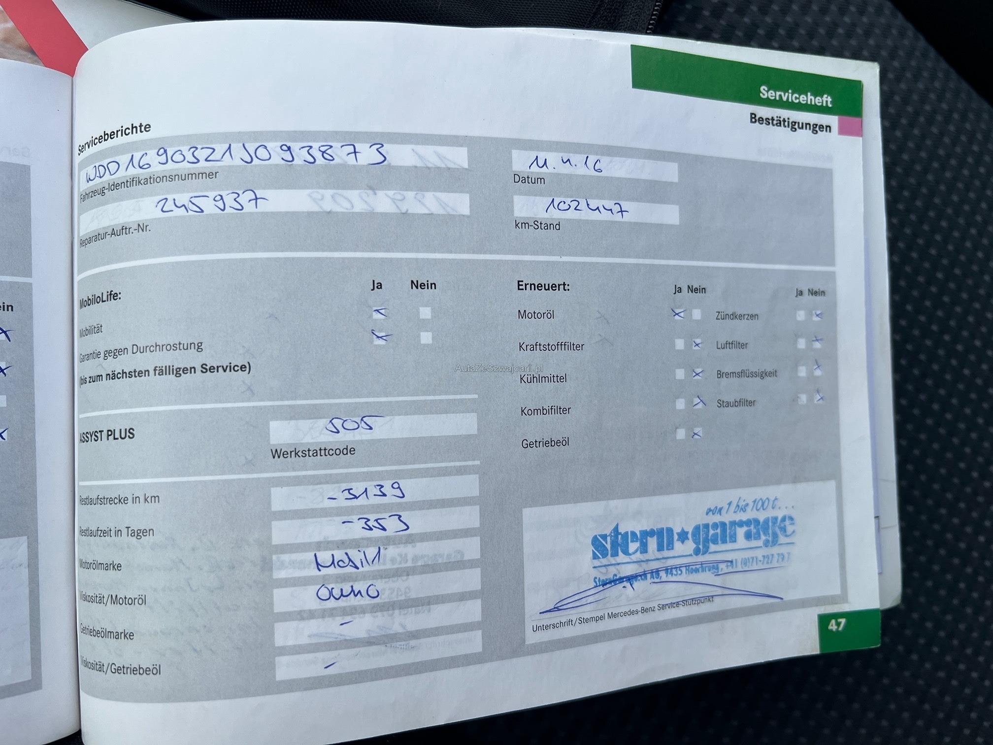 | Zahnriemen gewechselt | No |