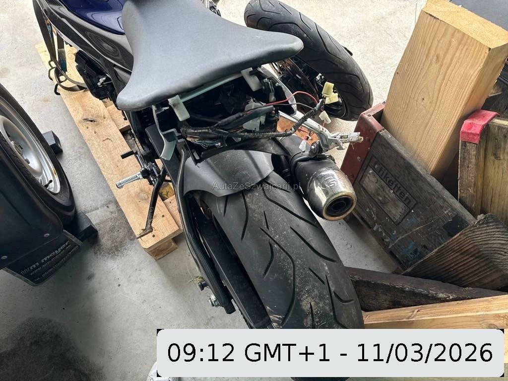 | Beschädigungen | Armaturen, Auspuffkollektor, Auspufftopf, Aussenspiegel links, Aussenspiegel rechts, Front, Fussraster links, Fussraster rechts, Gabelholm, Griff links, Griff rechts, Heck, Heckverkleidung, Kabelstrang, Kühler, Lenkanschlag, Lenker, Lenkschloss, Rad hinten, Rad vorne, Rahmen, Rücklicht, Scheinwerfer, Schutzblech hinten, Schutzblech vorne, Seite links, Seite rechts, Sitz, Tank, Verschalungen links, Verschalungen rechts, Verschalungen vorne, Windschutzscheibe, Zündschloss |