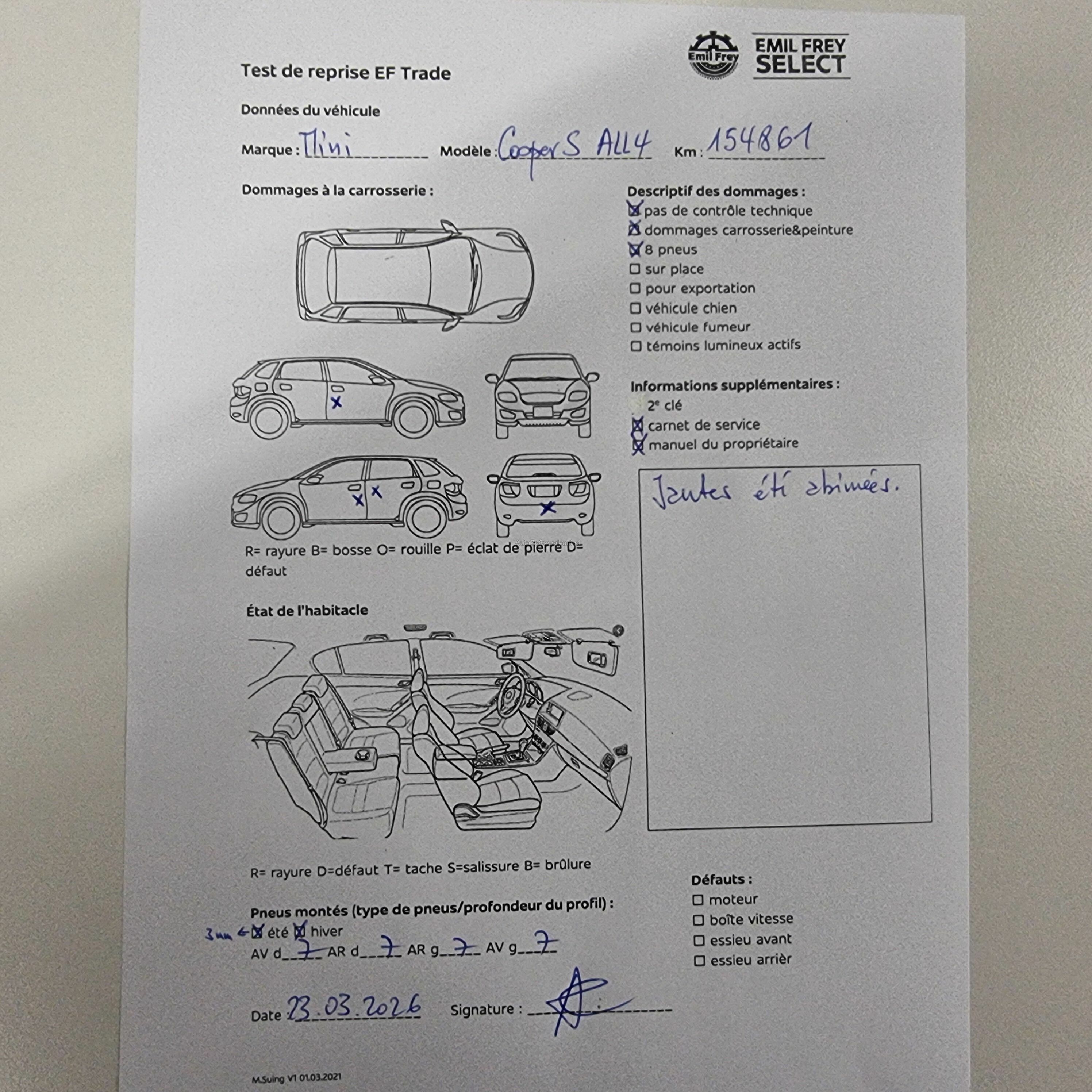 Pas de contrôle technique (essai en atelier) effectué